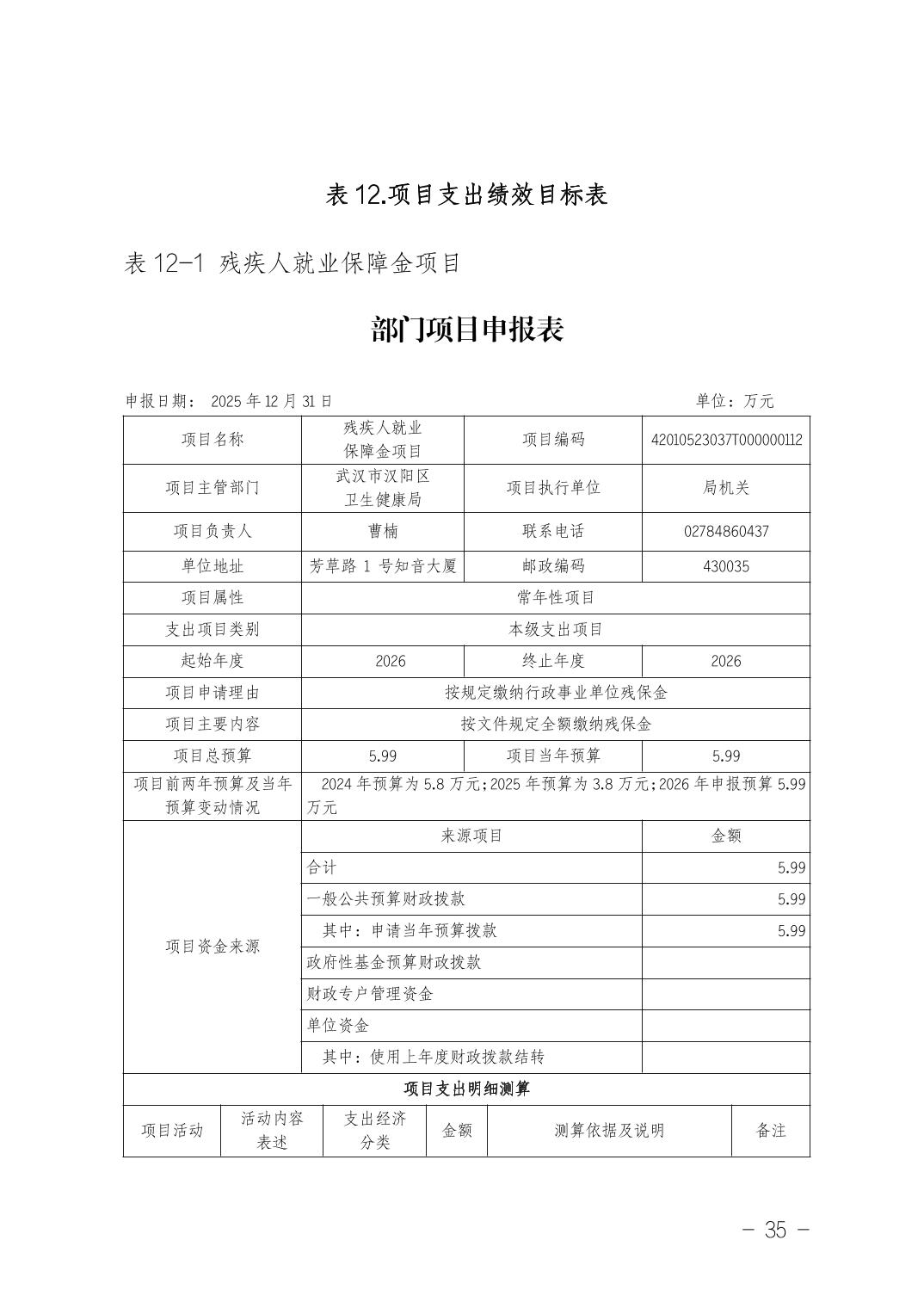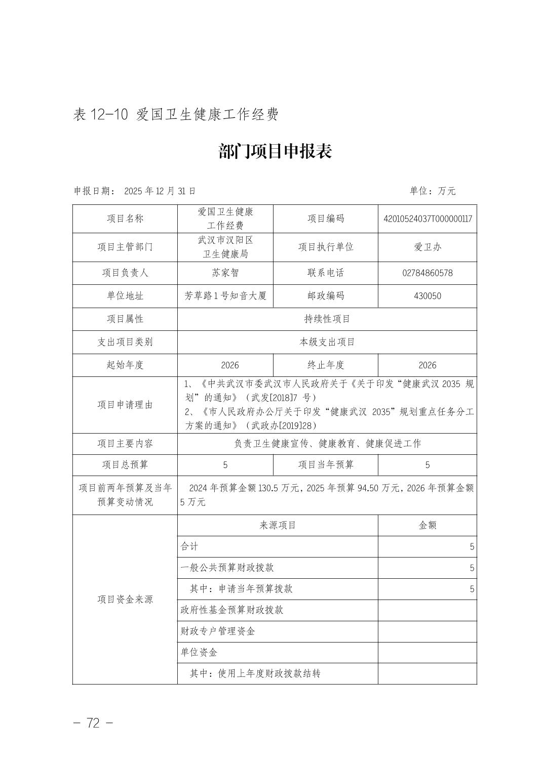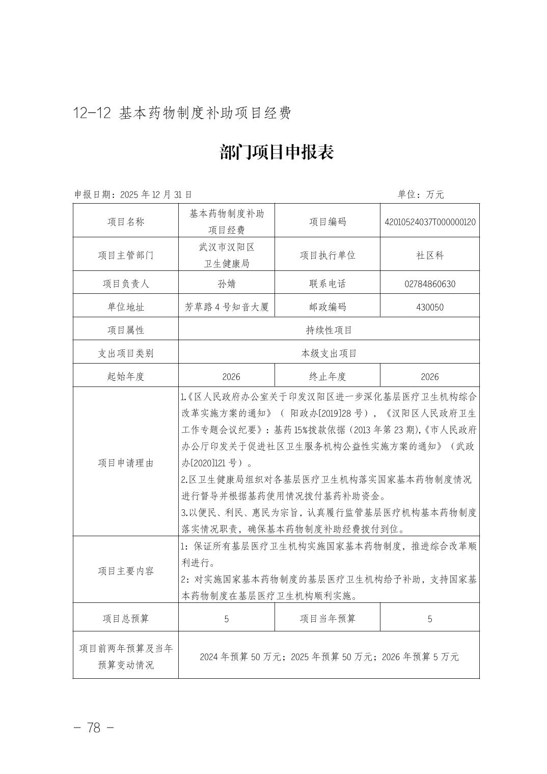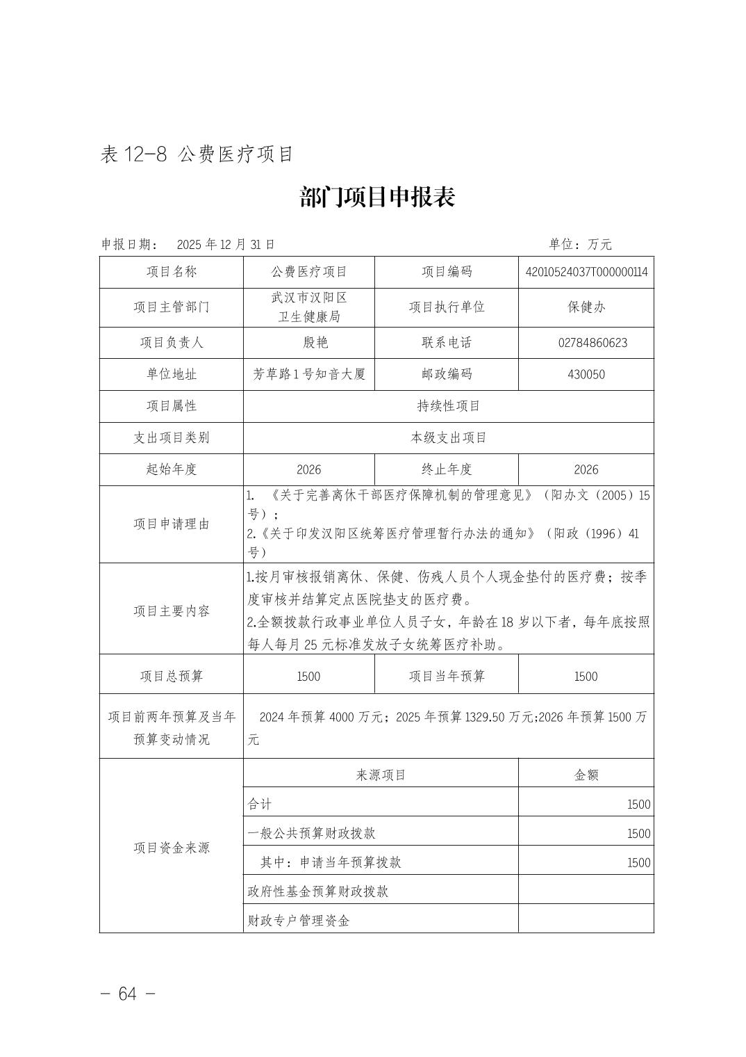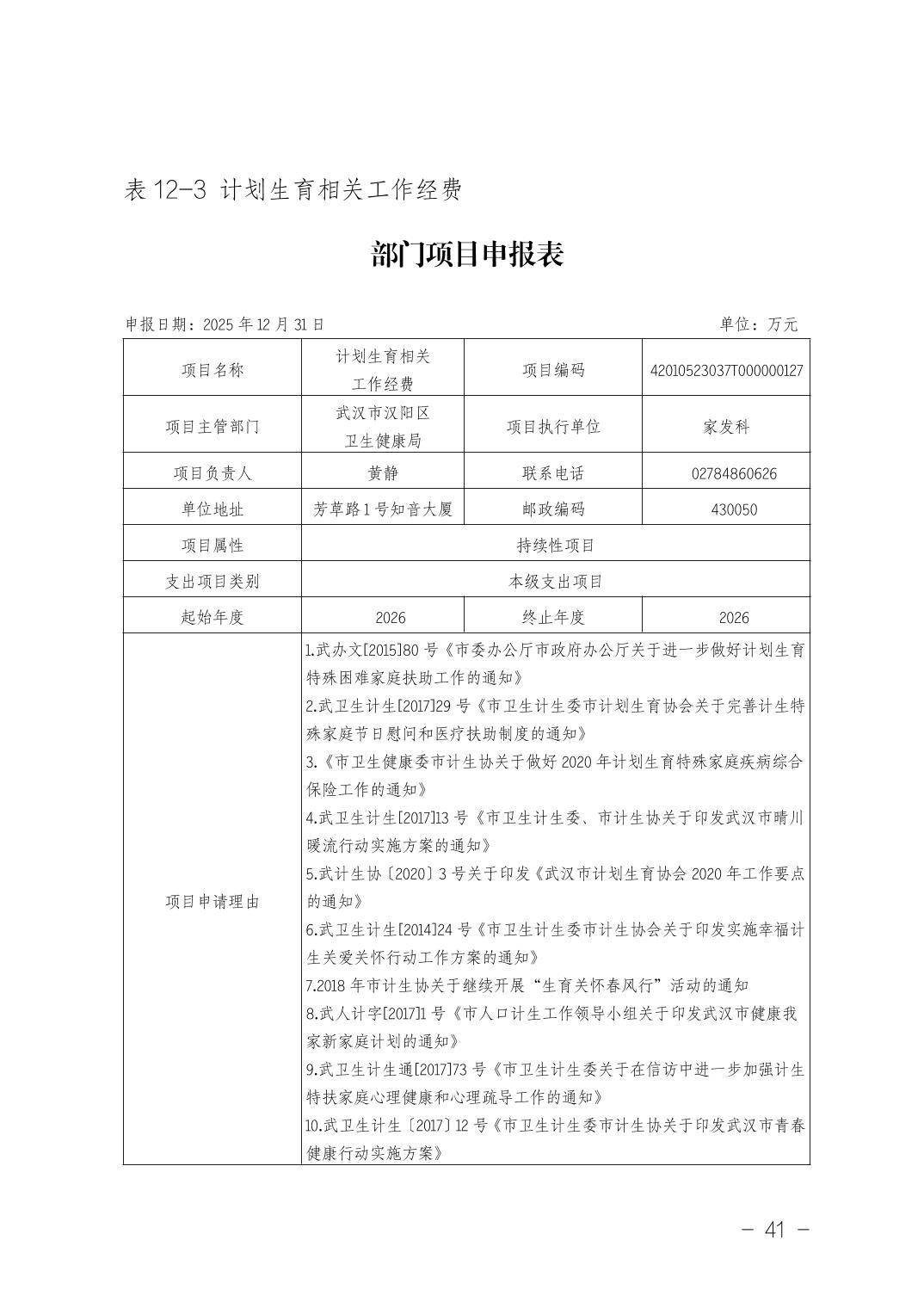 武汉市汉阳区卫生健康局(本级)2026年部门预算