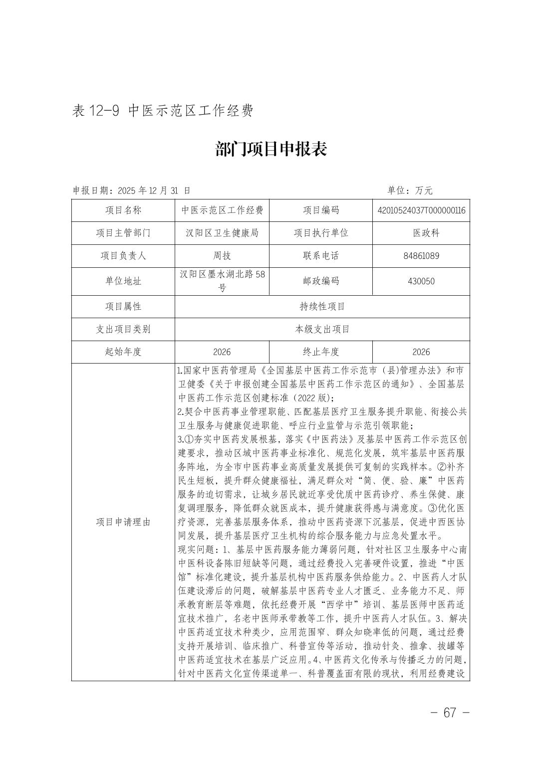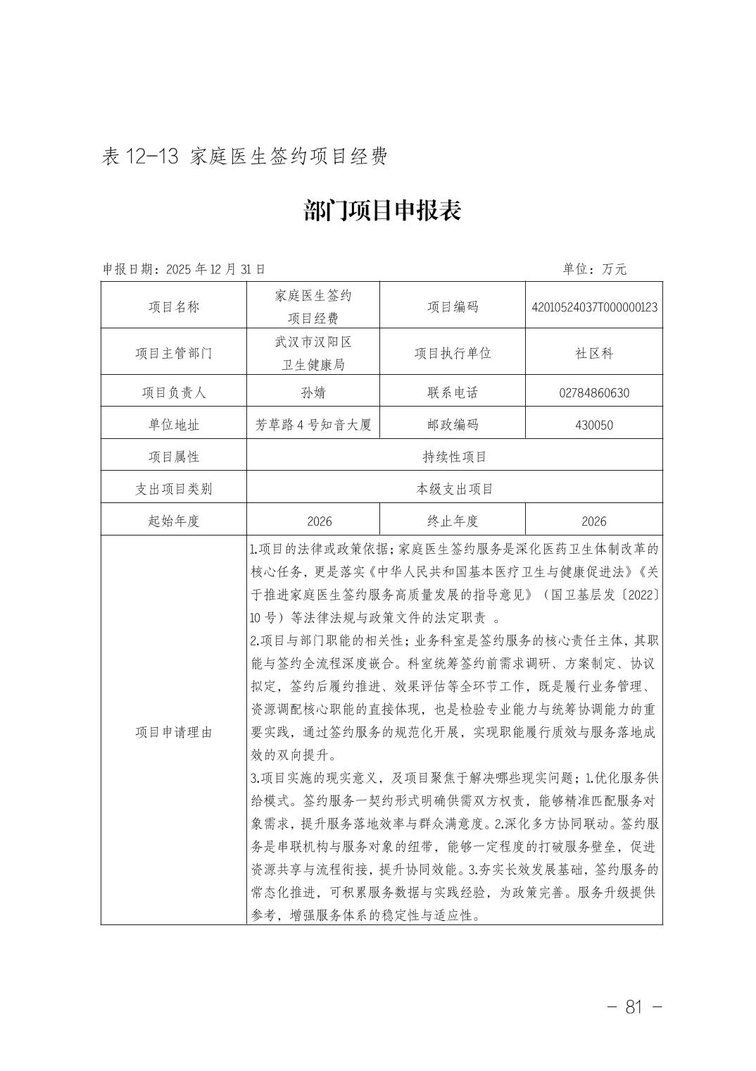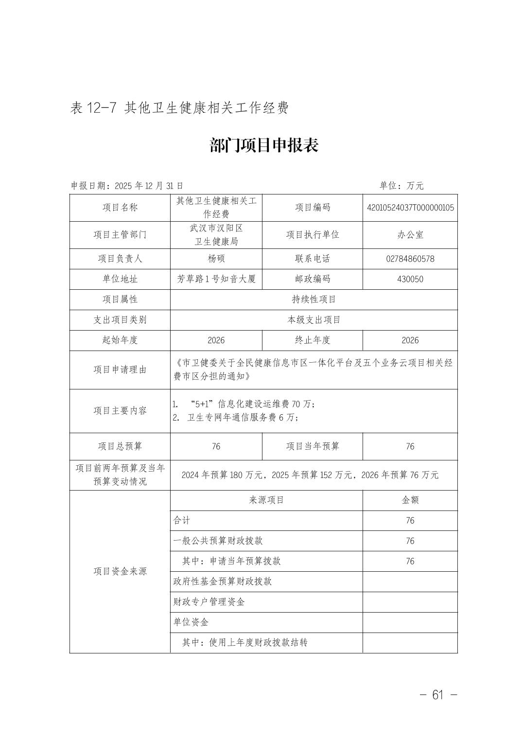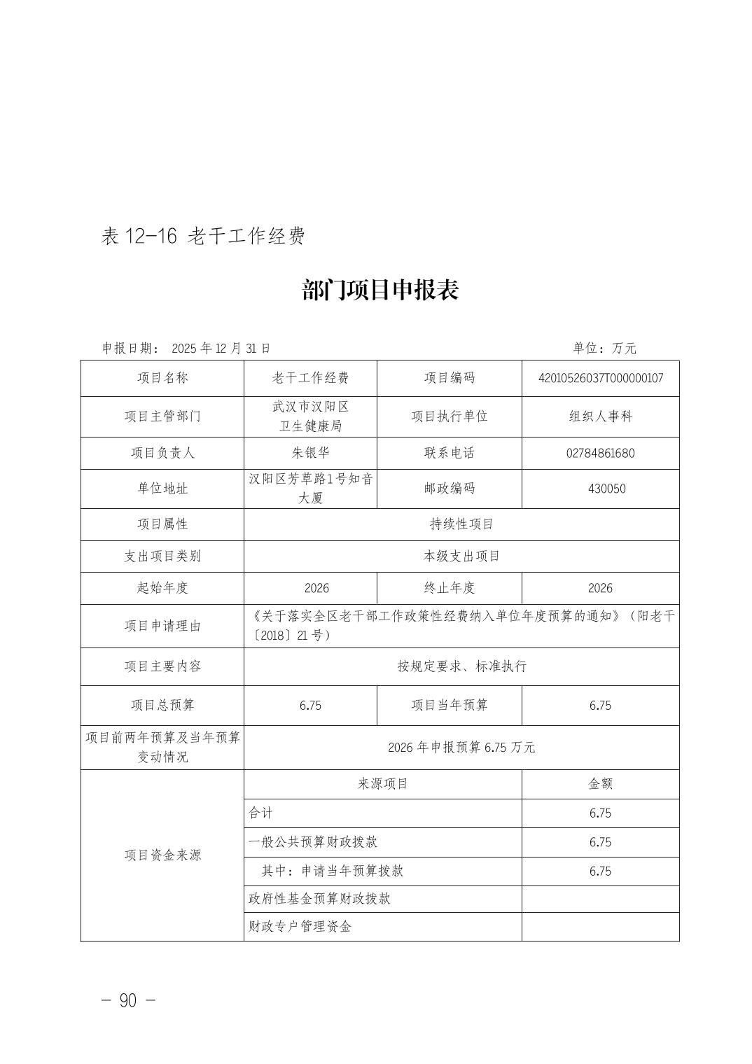 武汉市汉阳区卫生健康局(本级)2026年部门预算