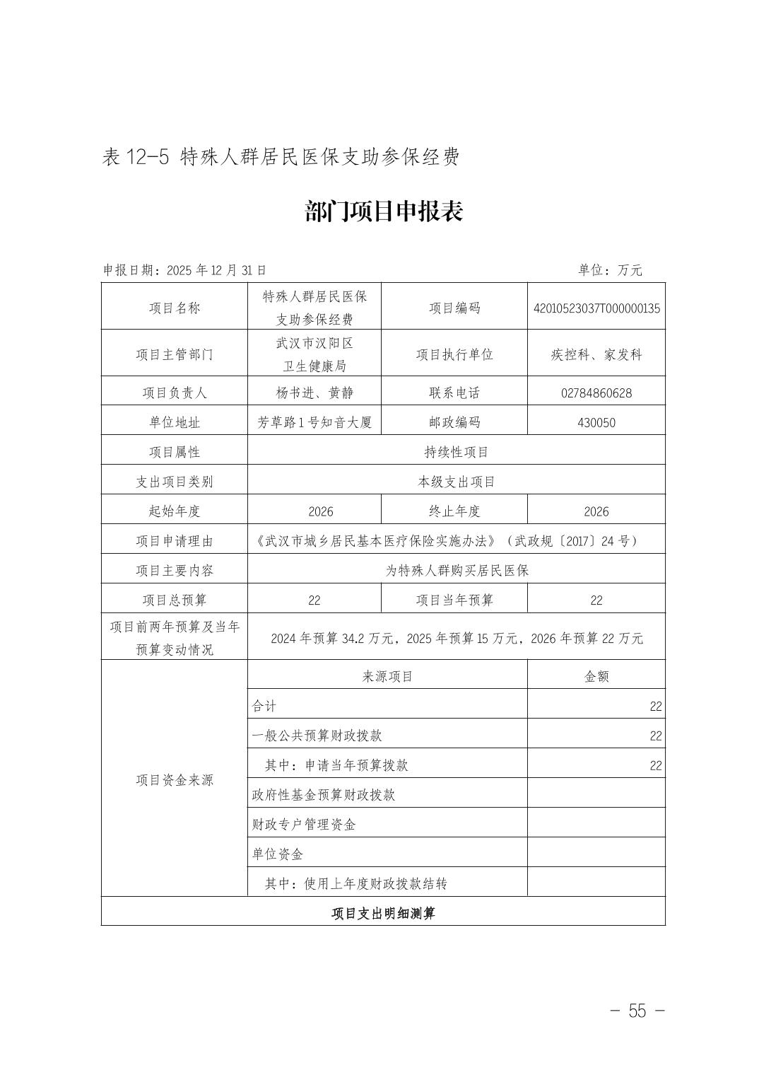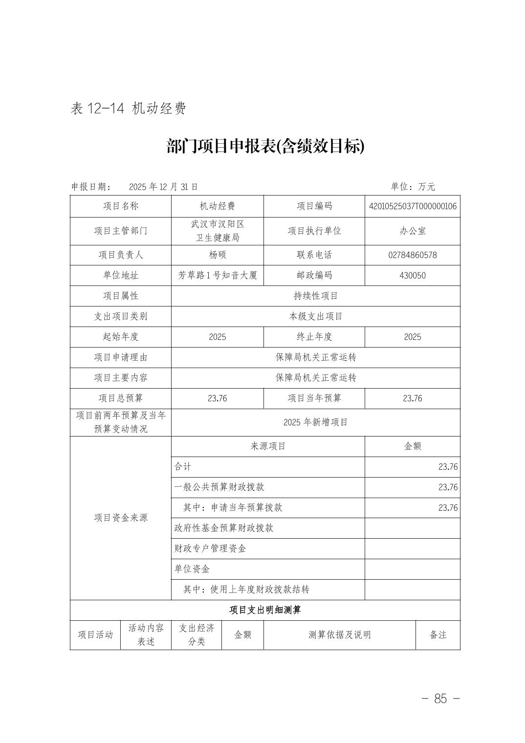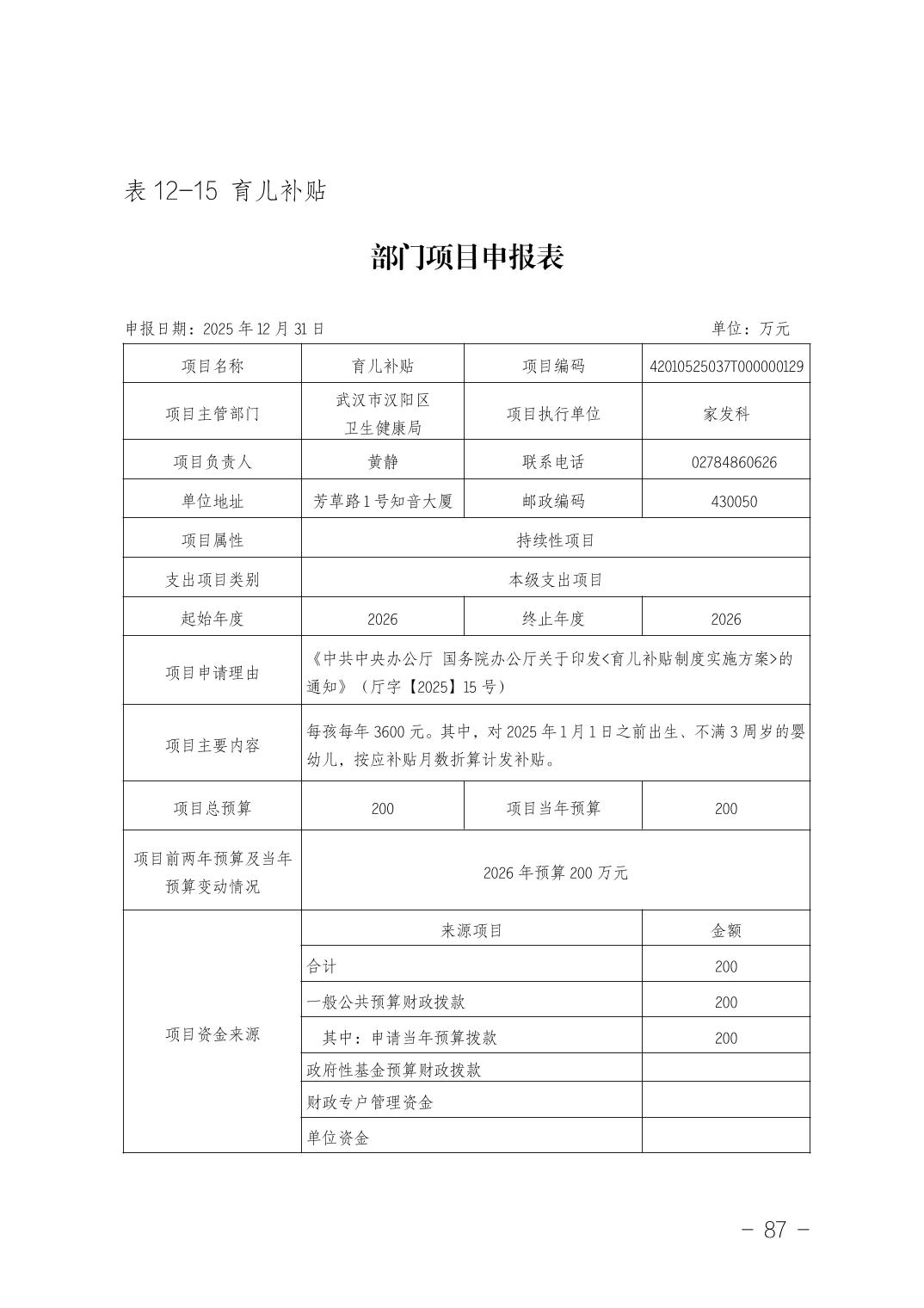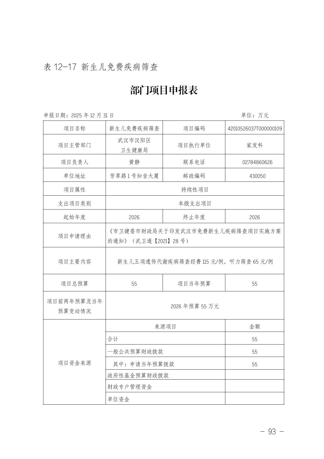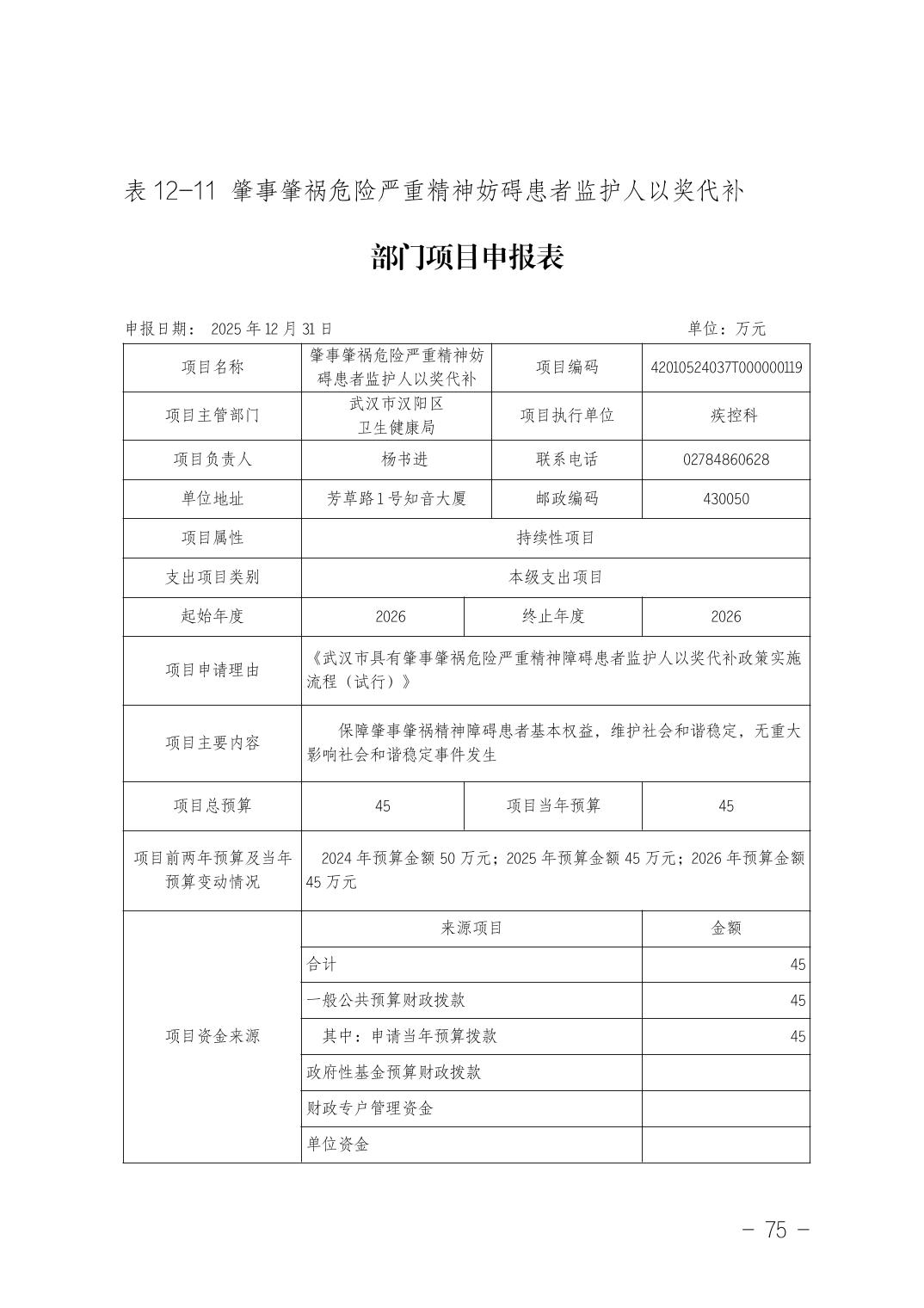 武汉市汉阳区卫生健康局(本级)2026年部门预算