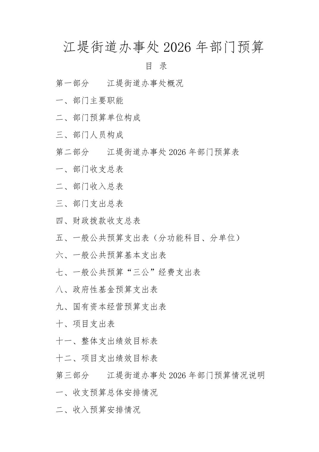 江堤街道办事处2026年度部门预算及“三公”经费预算公开