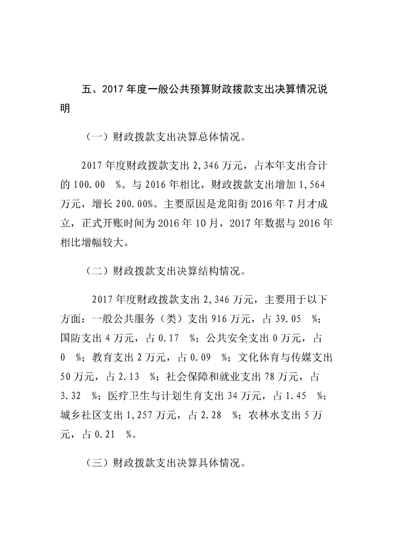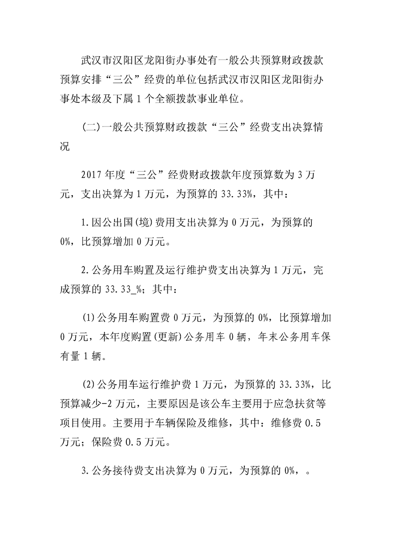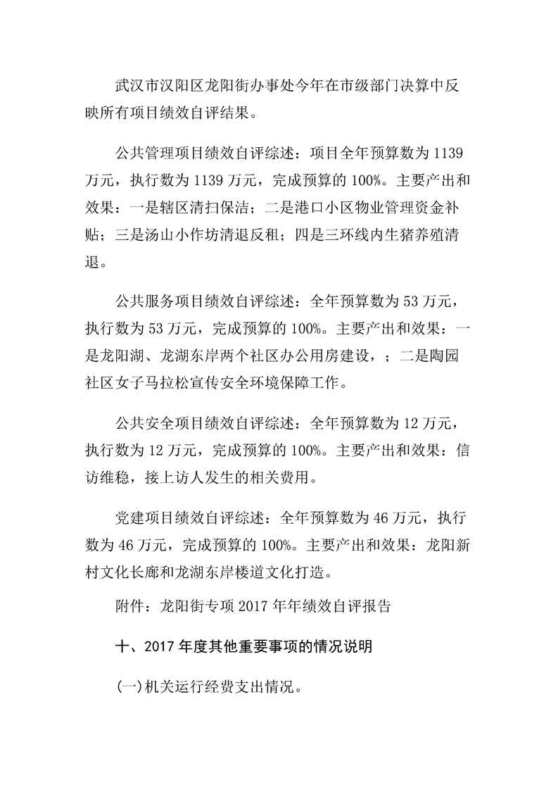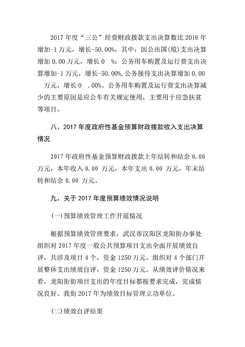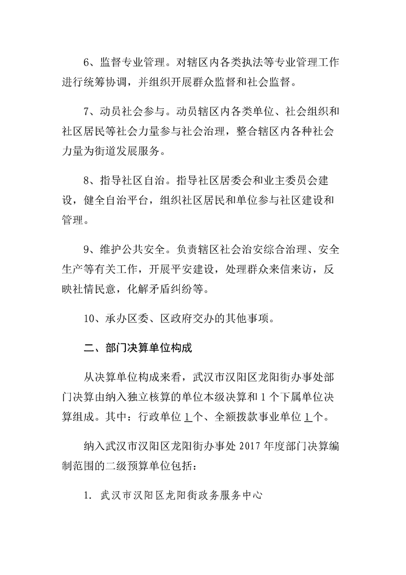 汉阳区龙阳街办事处2017年度部门决算