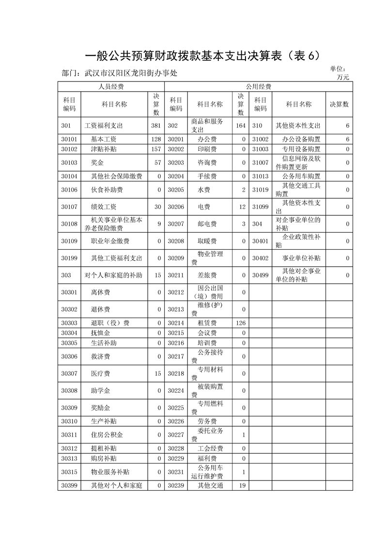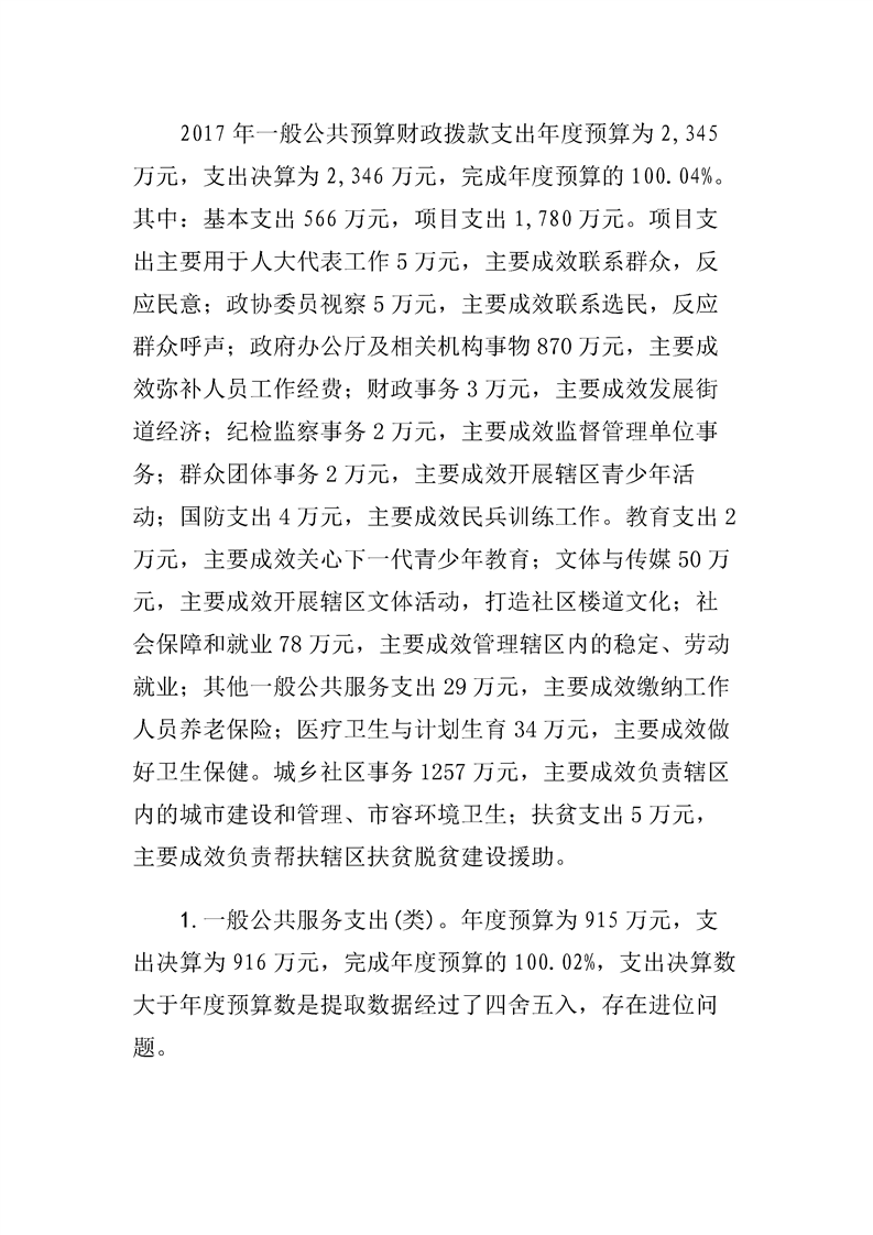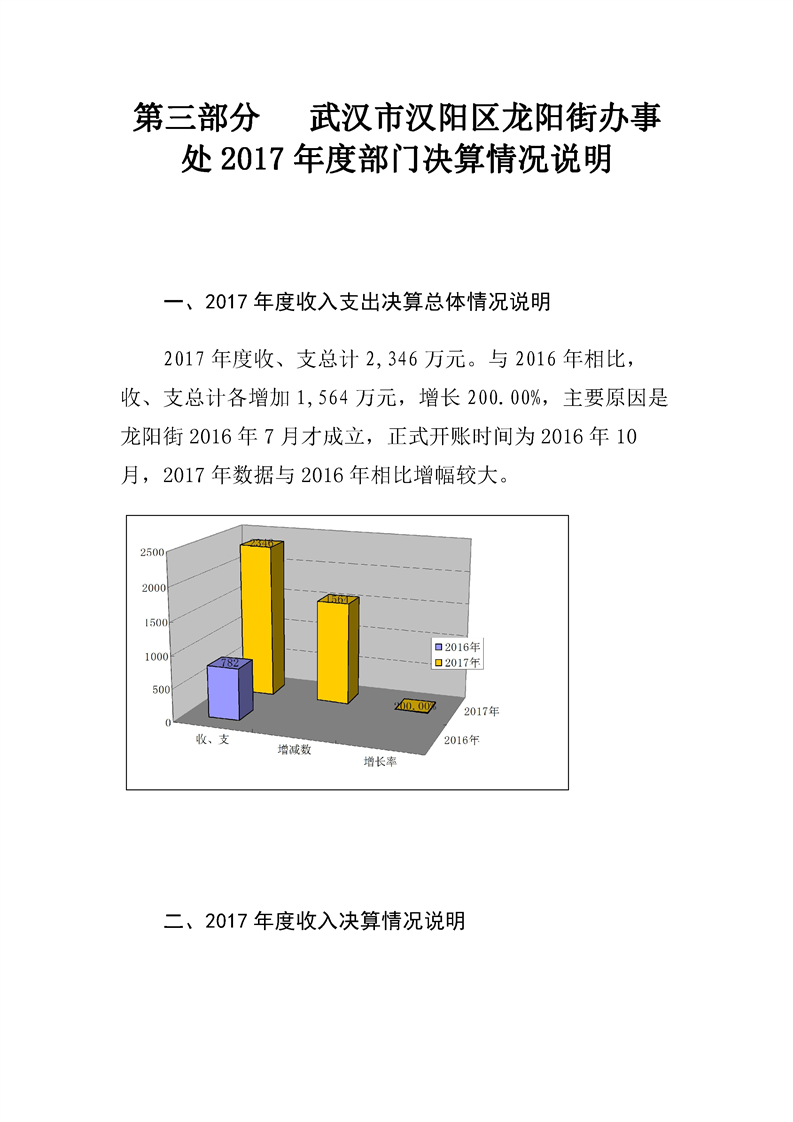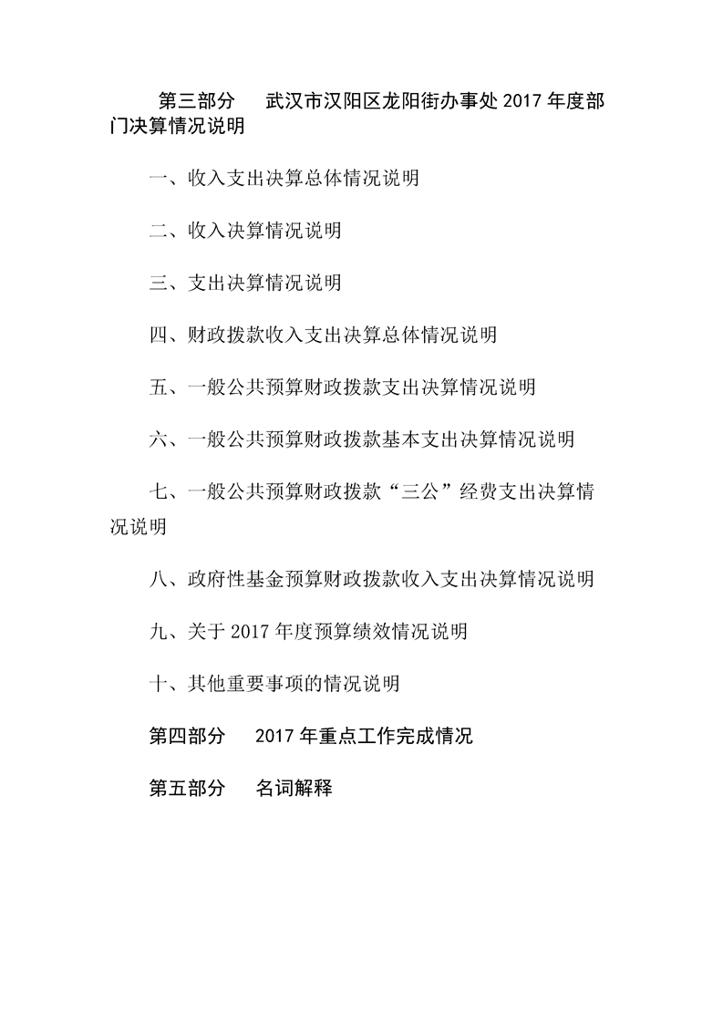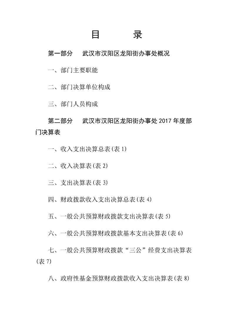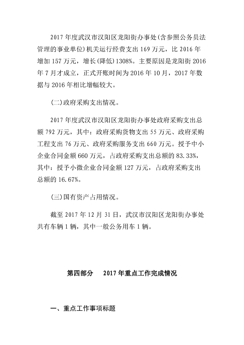 汉阳区龙阳街办事处2017年度部门决算