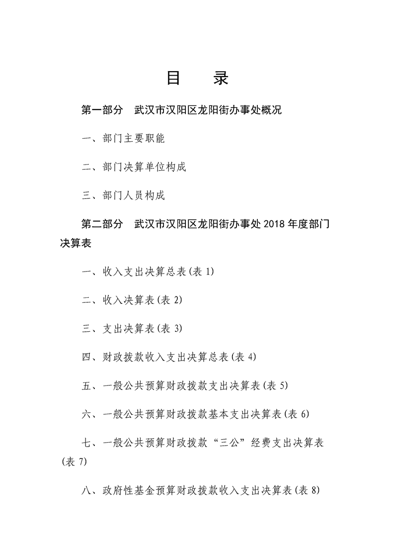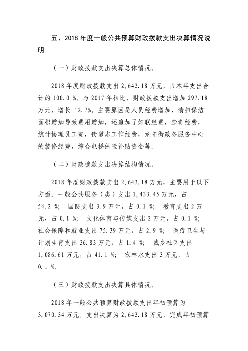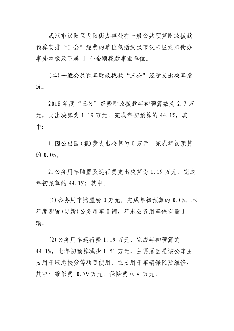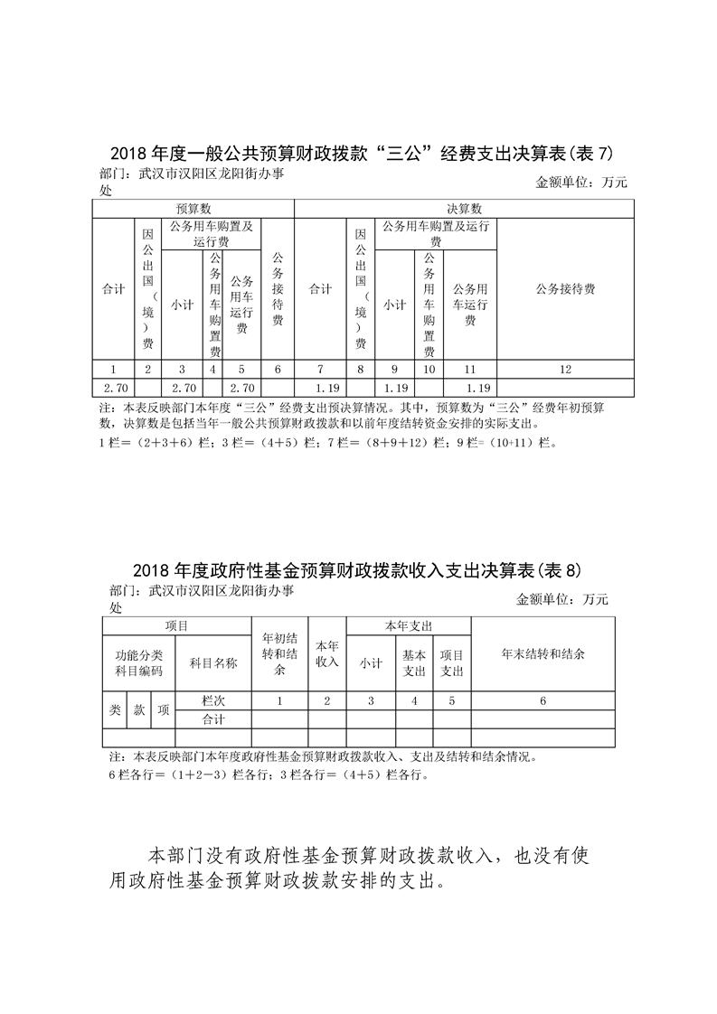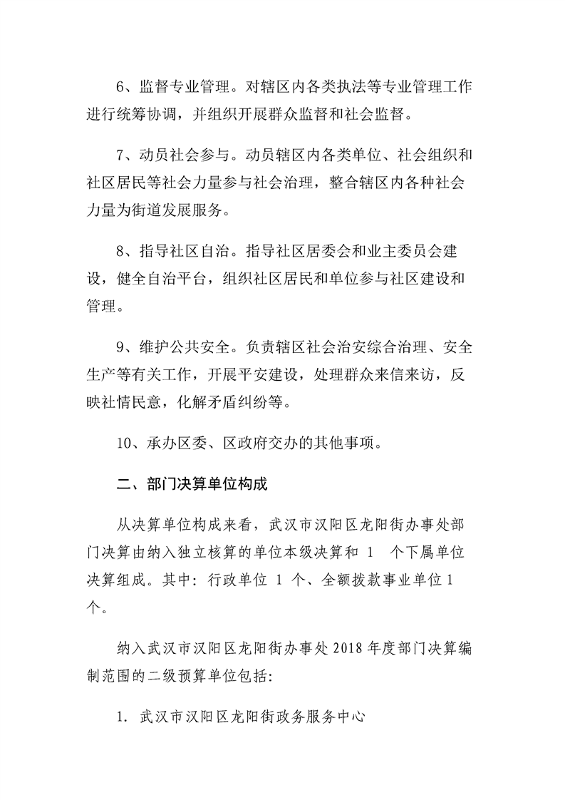 2018年度武汉市汉阳区龙阳街办事处部门决算