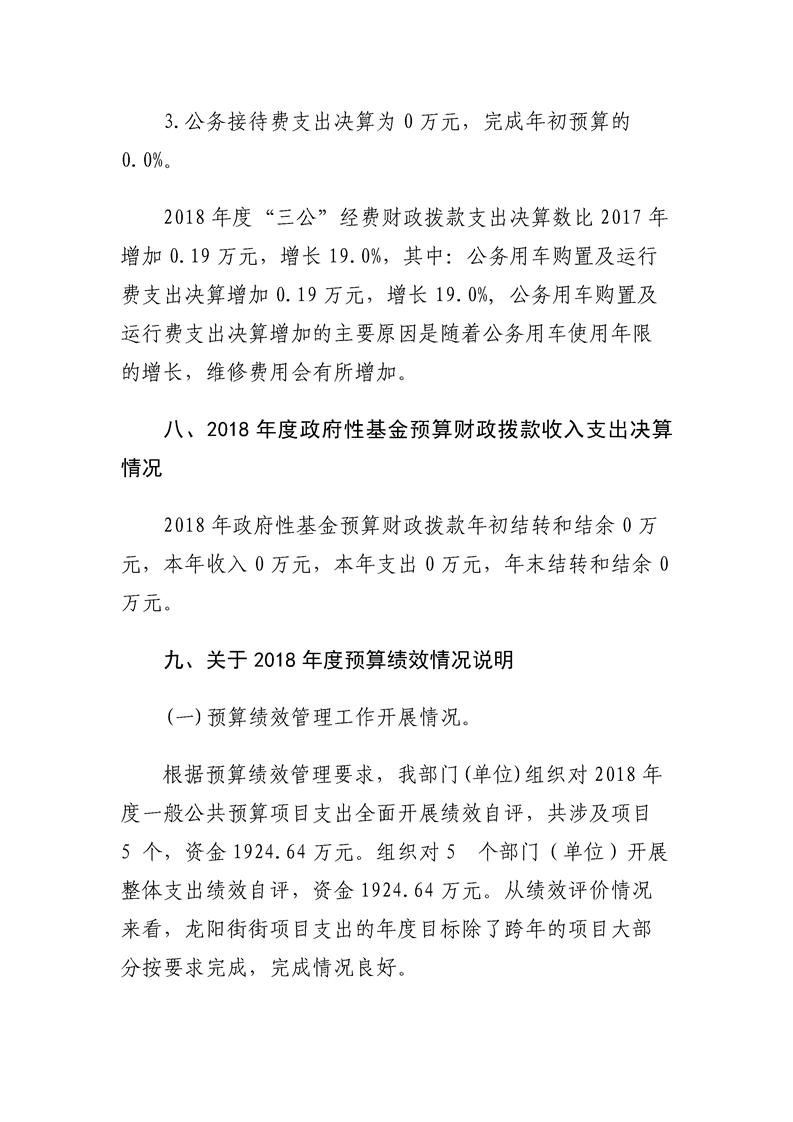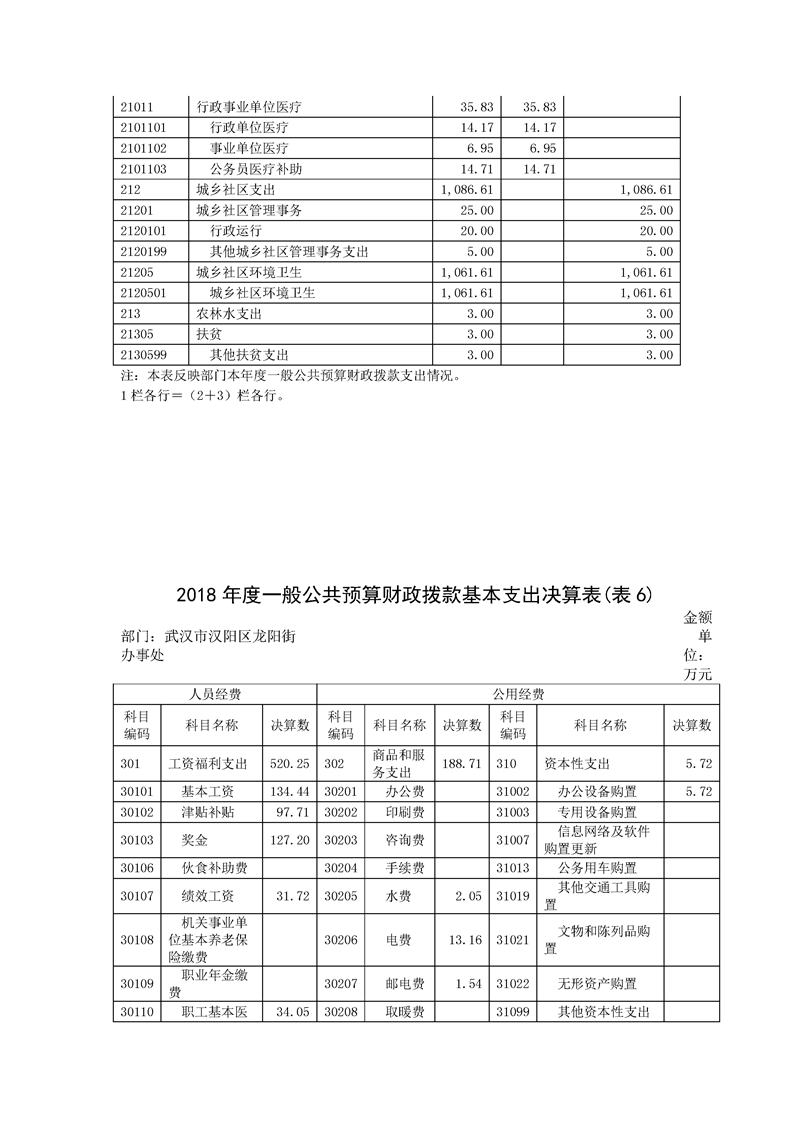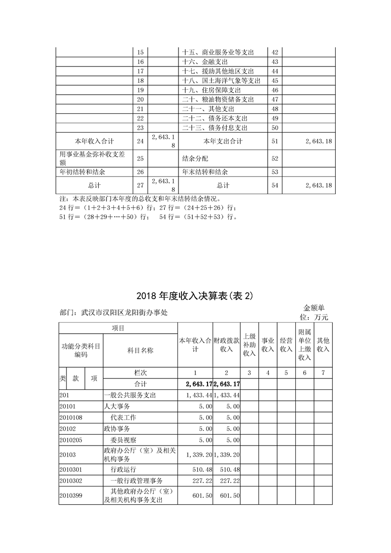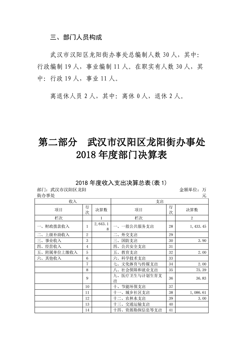 2018年度武汉市汉阳区龙阳街办事处部门决算