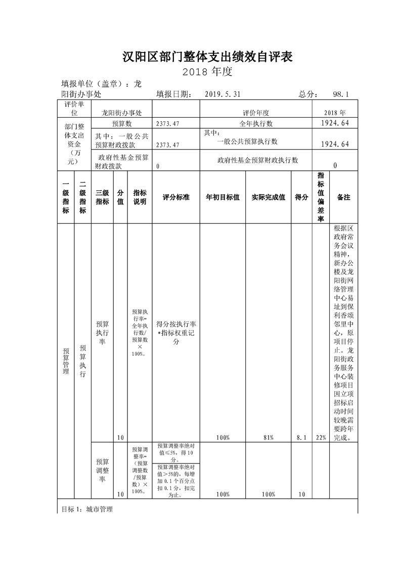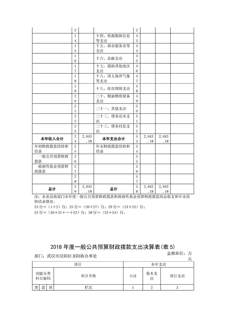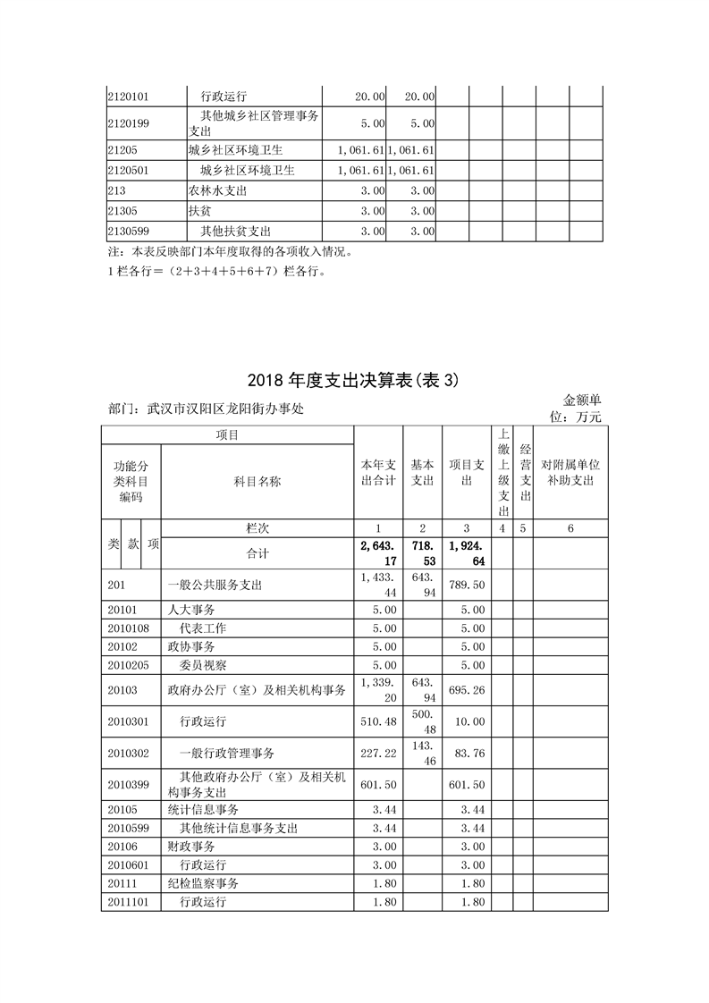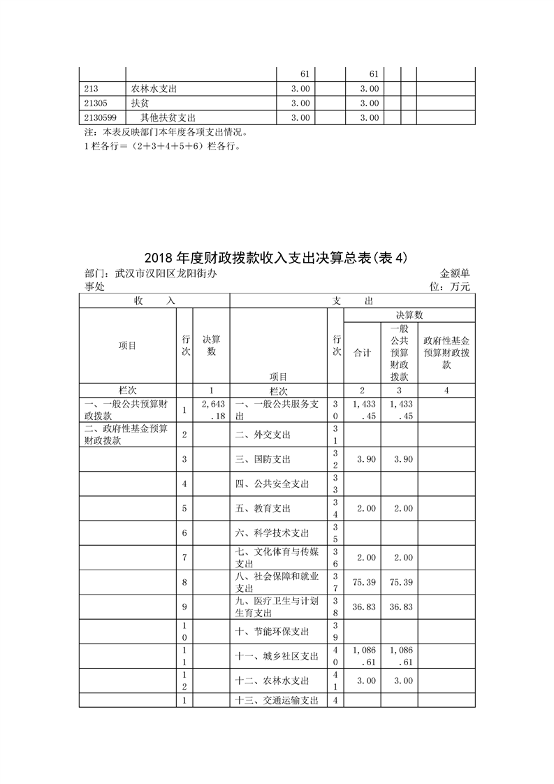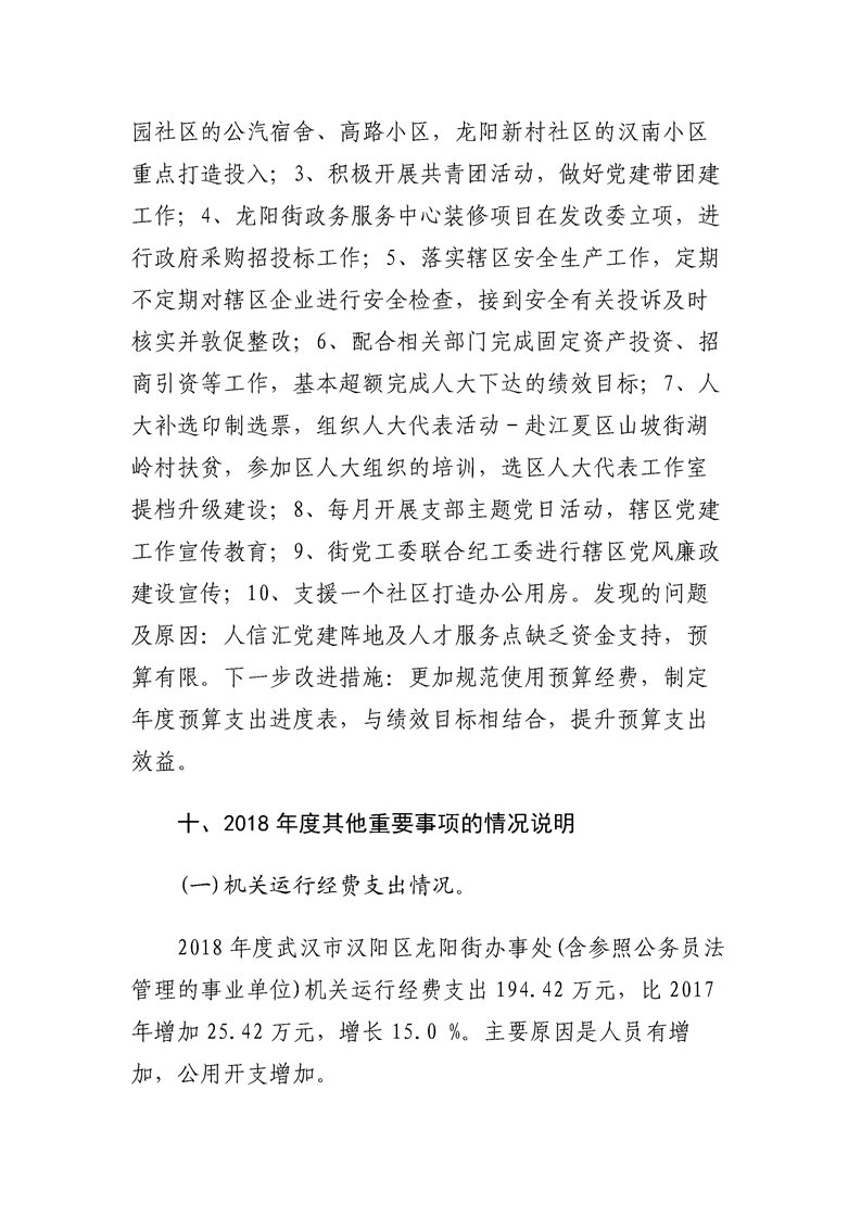 2018年度武汉市汉阳区龙阳街办事处部门决算