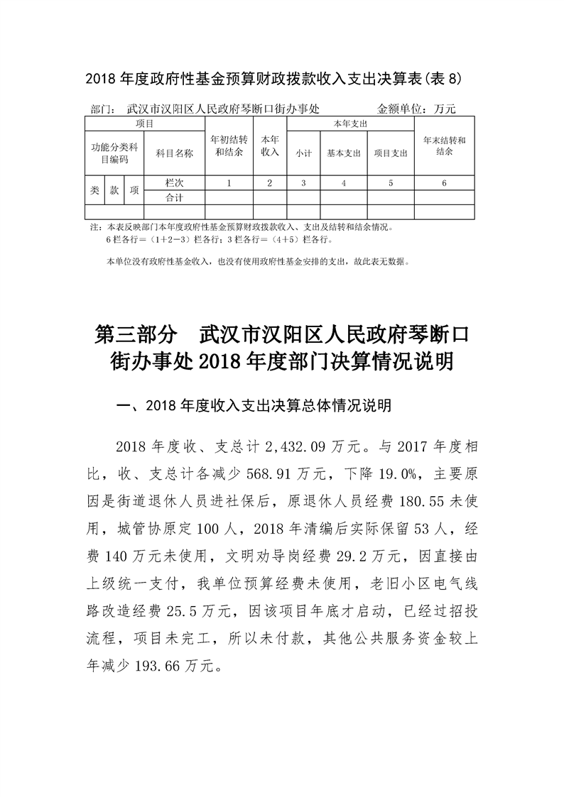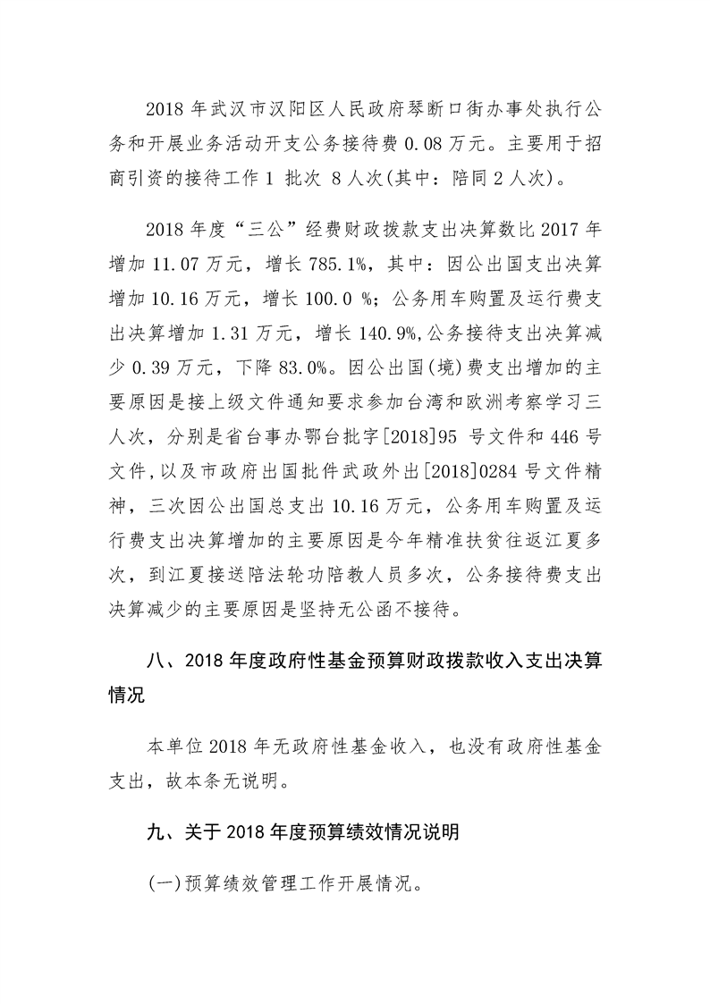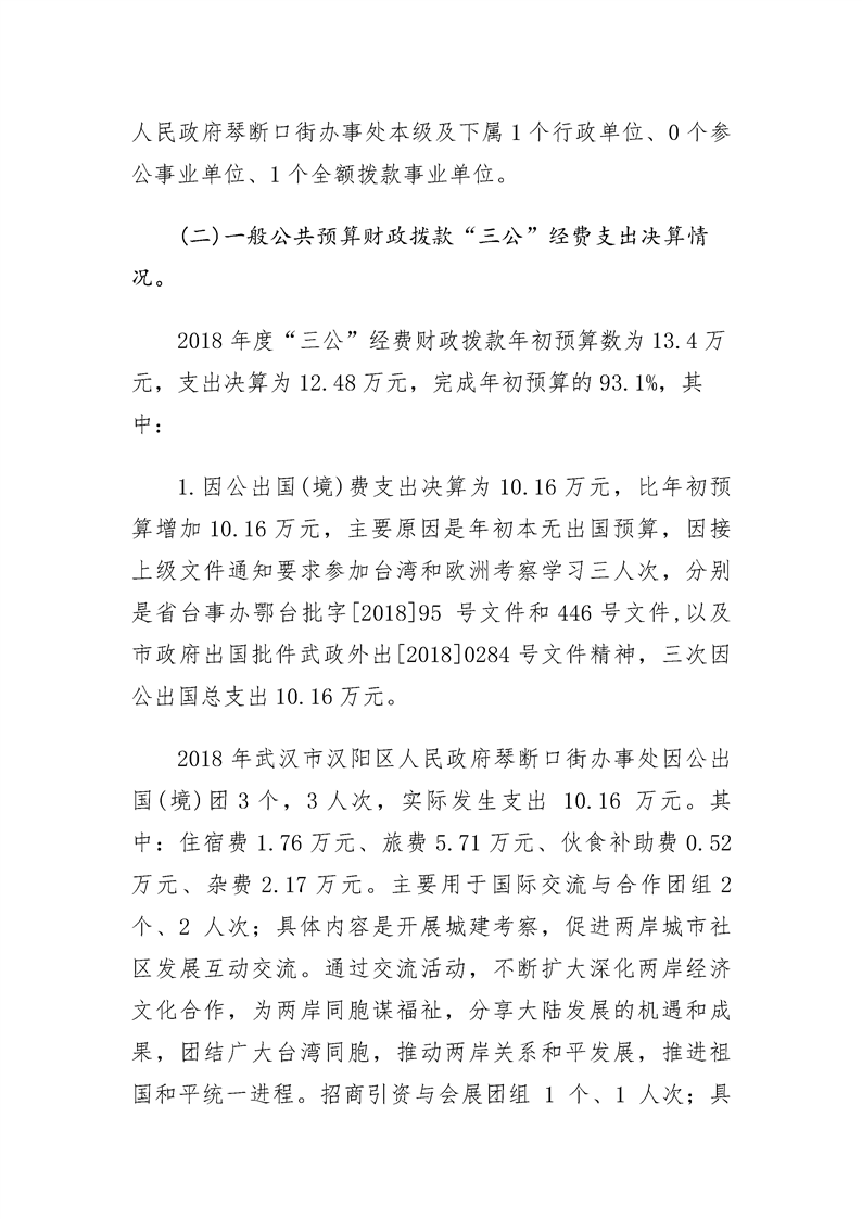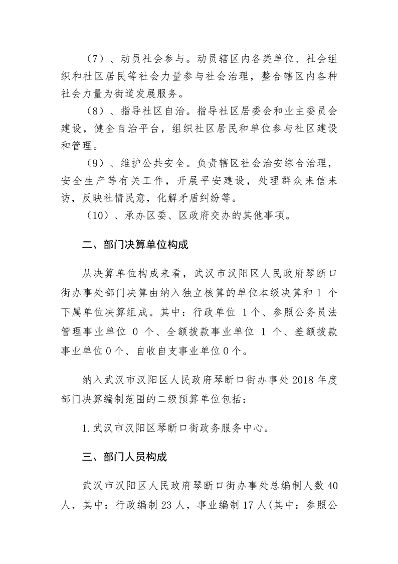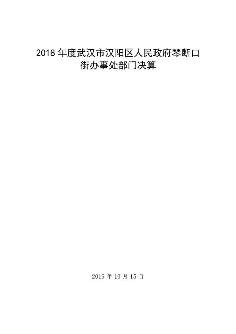 2018年度武汉市汉阳区人民政府琴断口街办事处部门决算