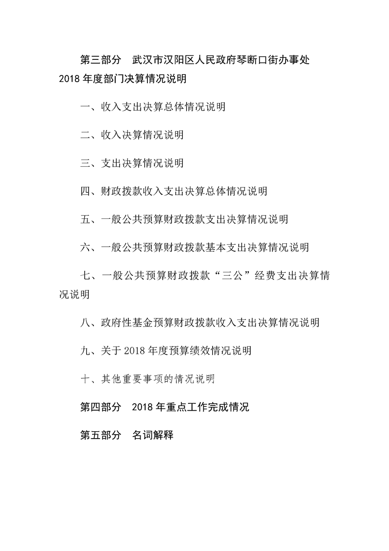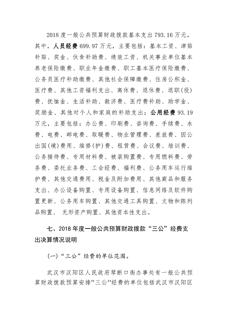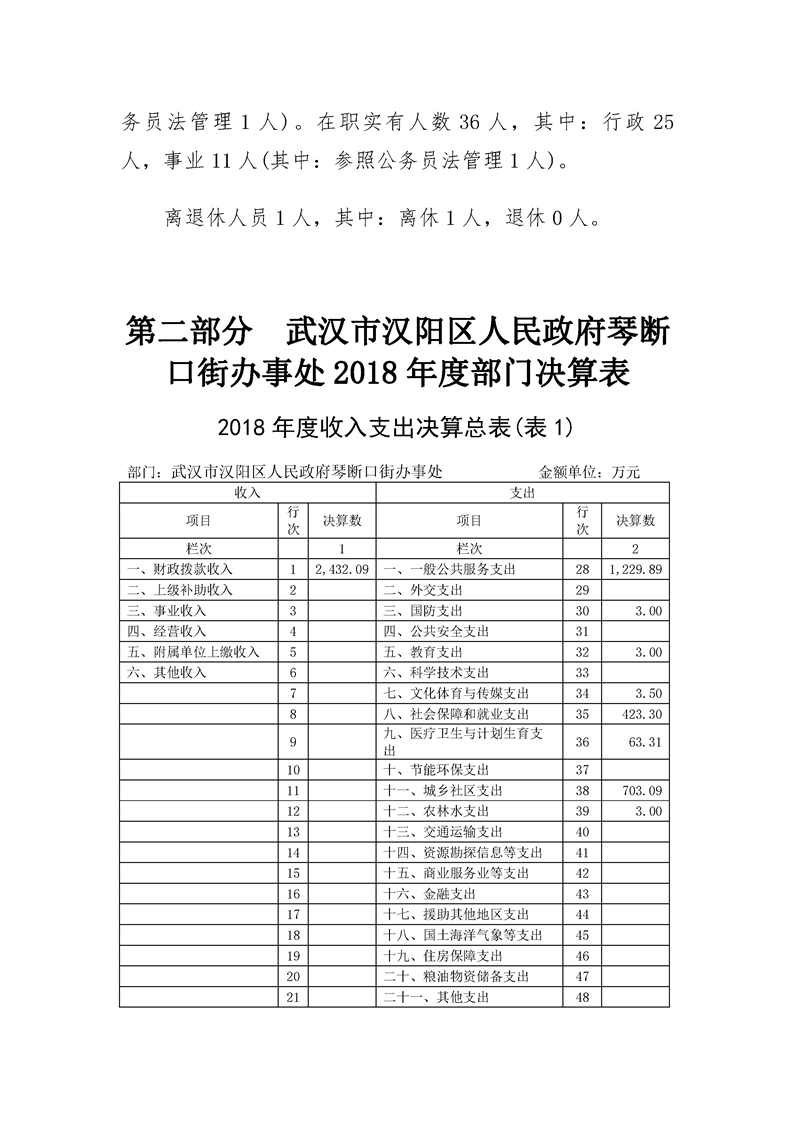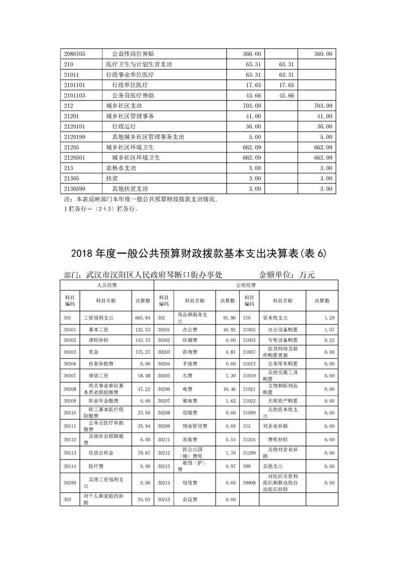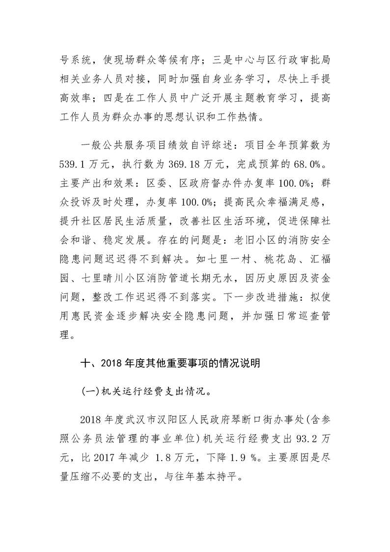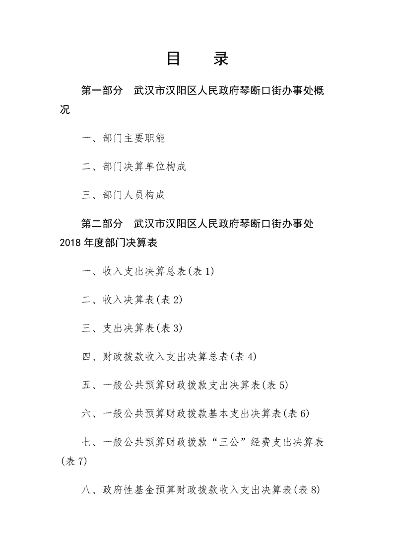 2018年度武汉市汉阳区人民政府琴断口街办事处部门决算
