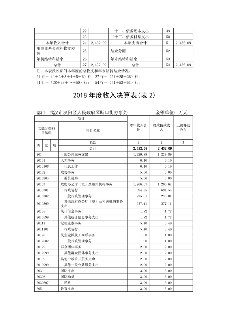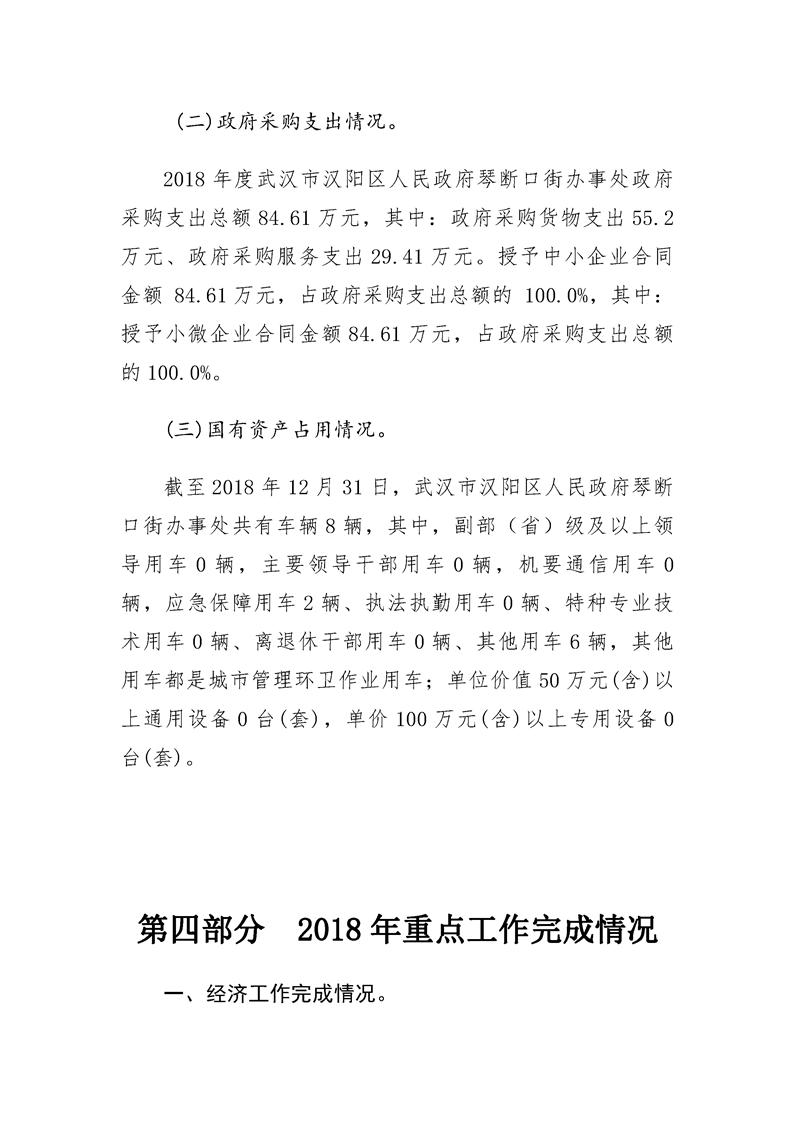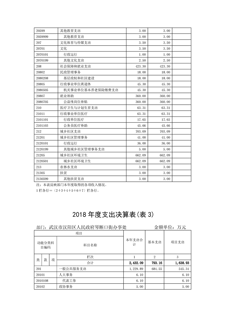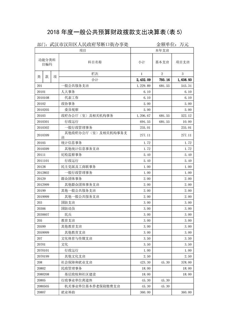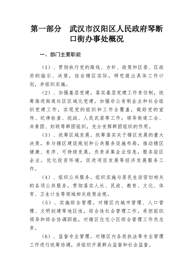 2018年度武汉市汉阳区人民政府琴断口街办事处部门决算