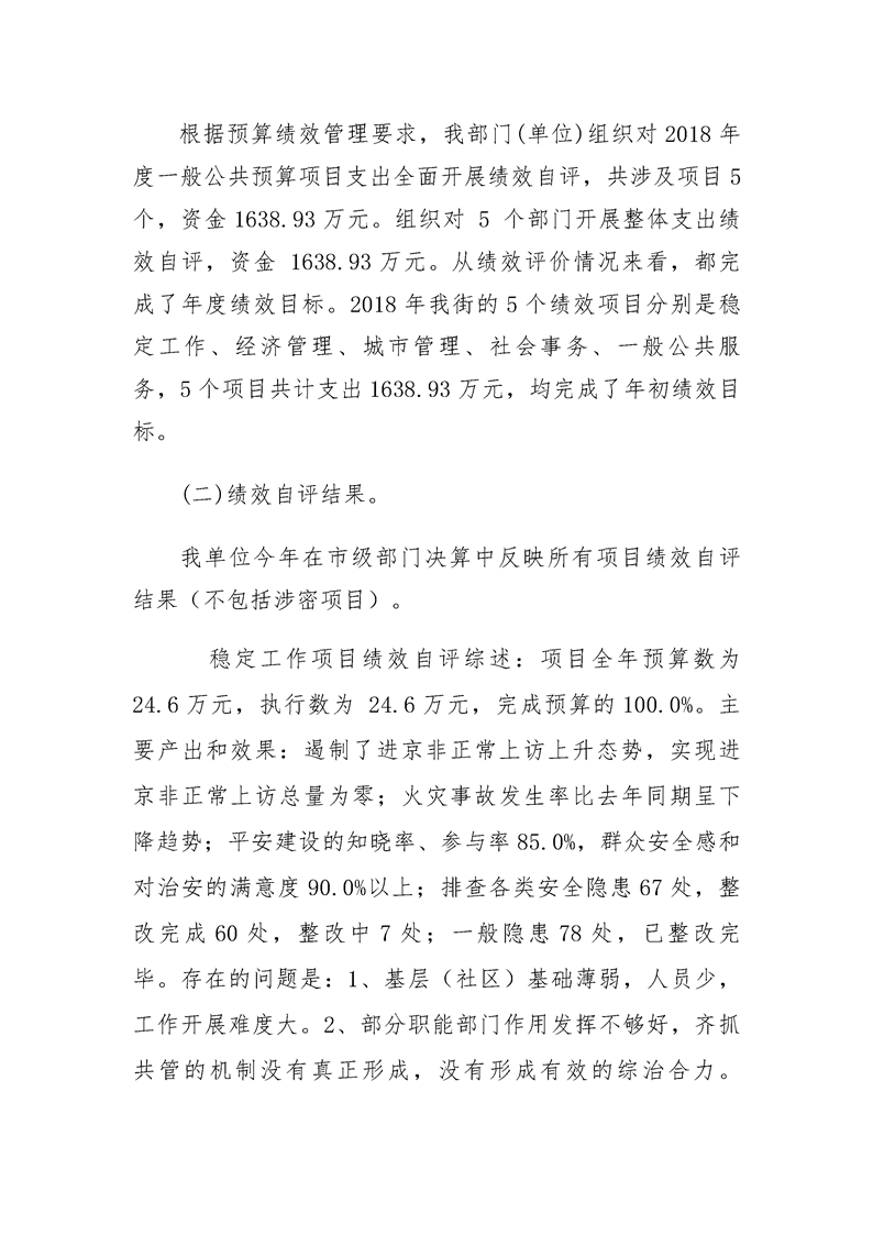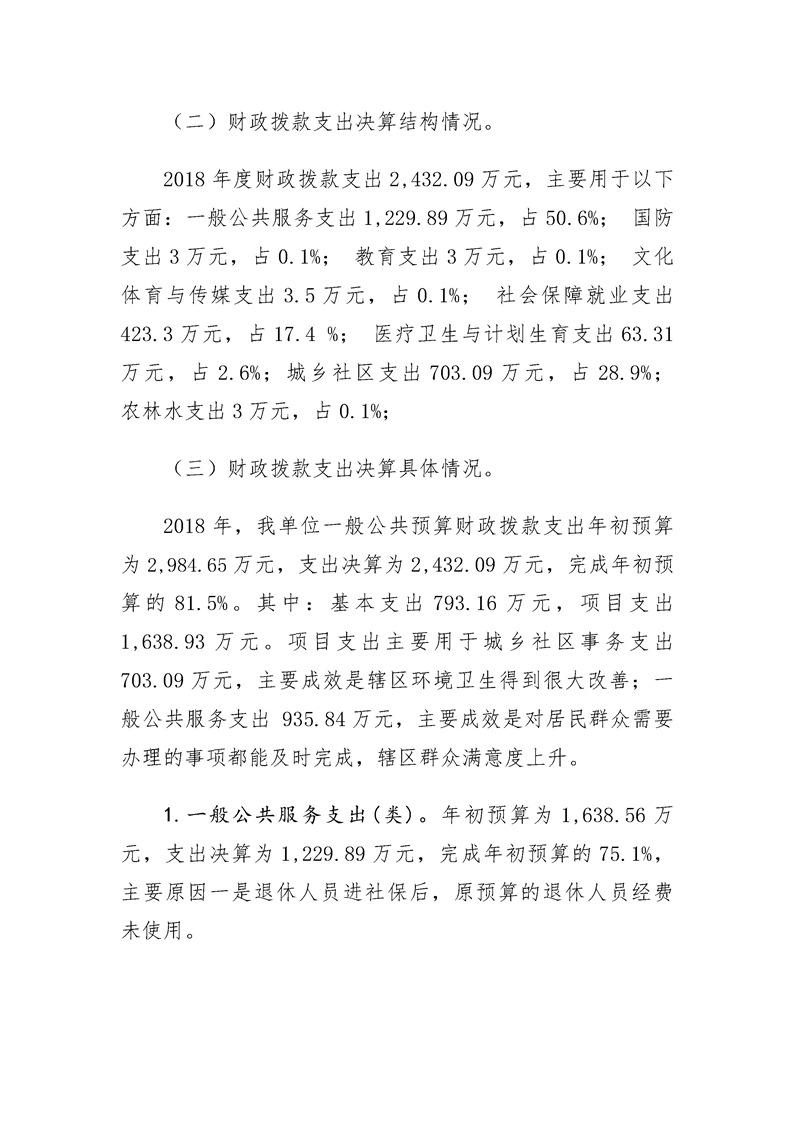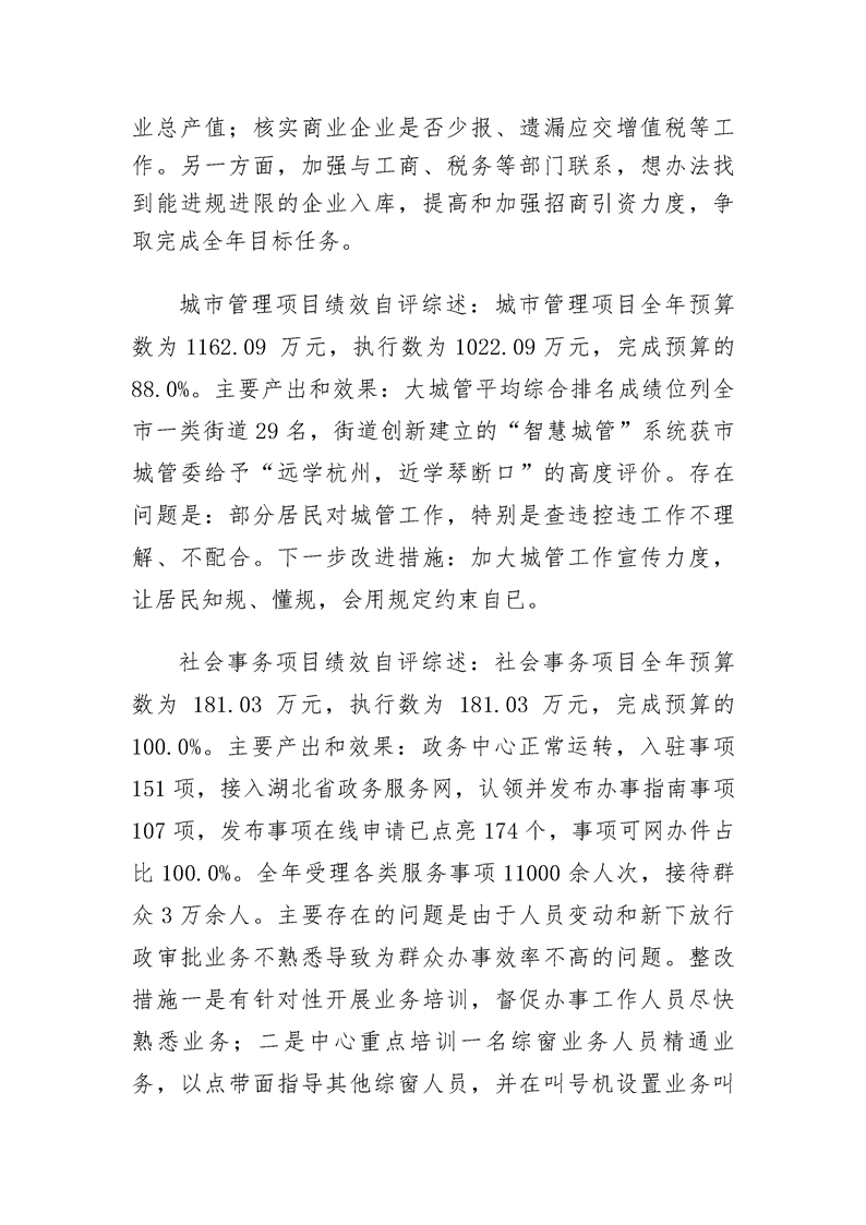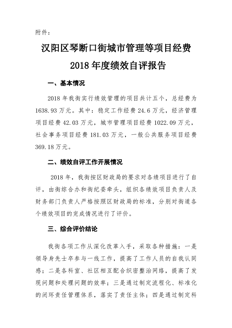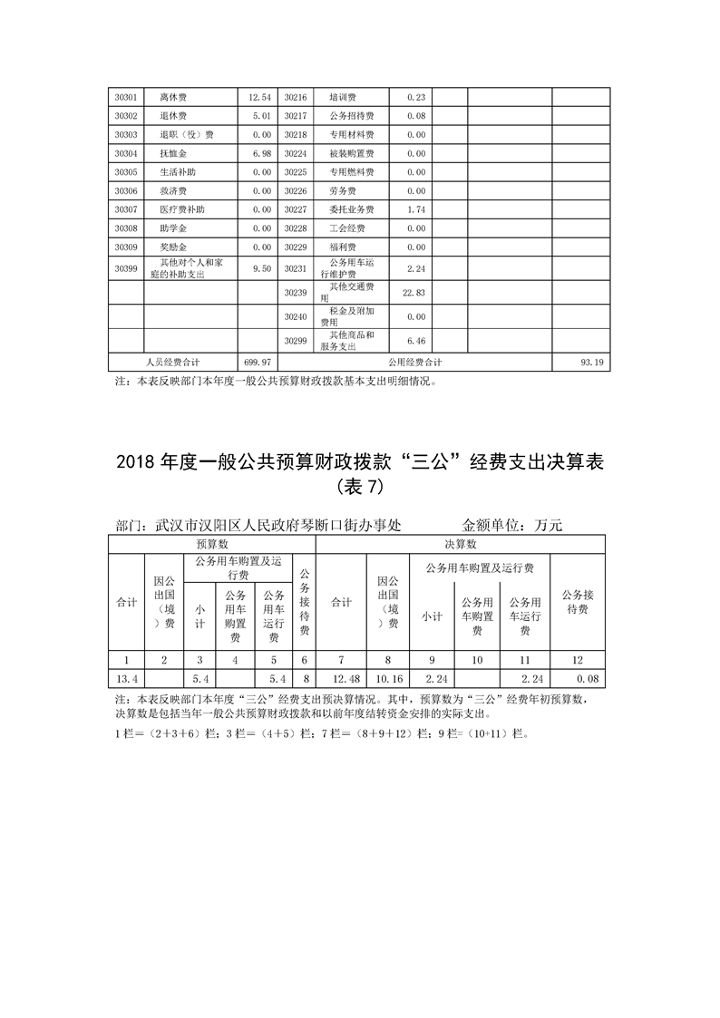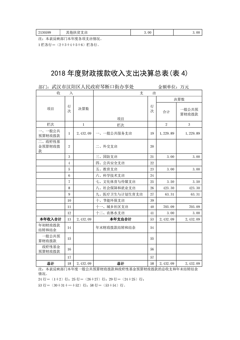 2018年度武汉市汉阳区人民政府琴断口街办事处部门决算