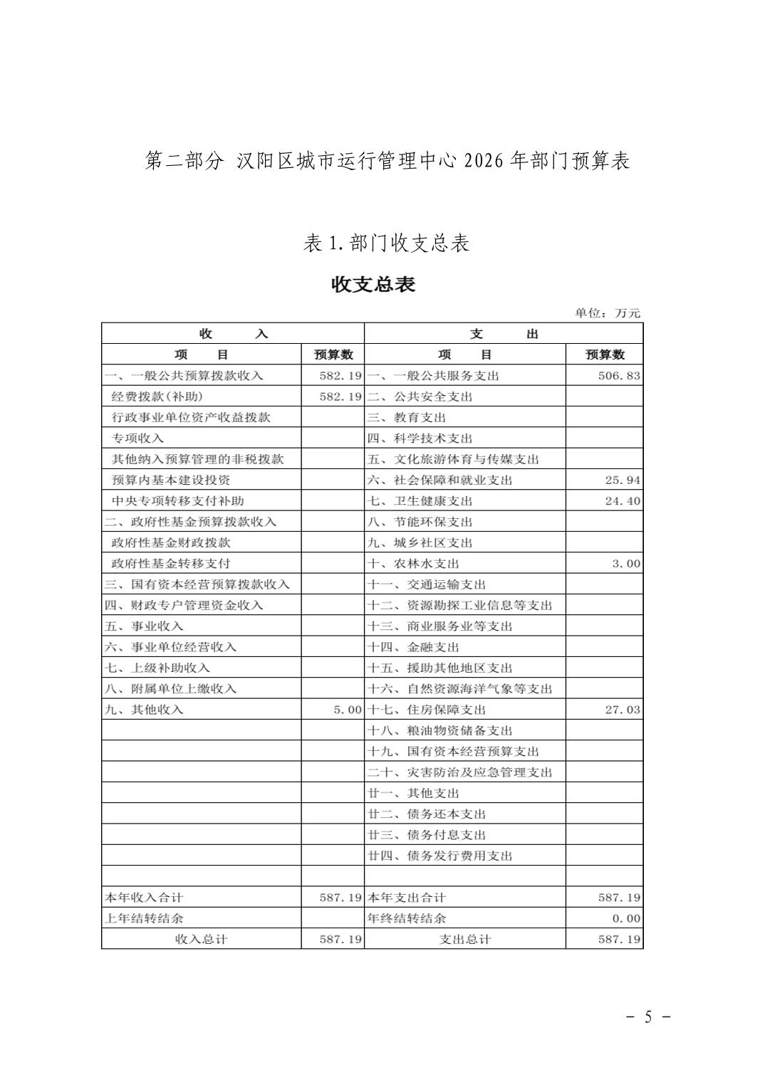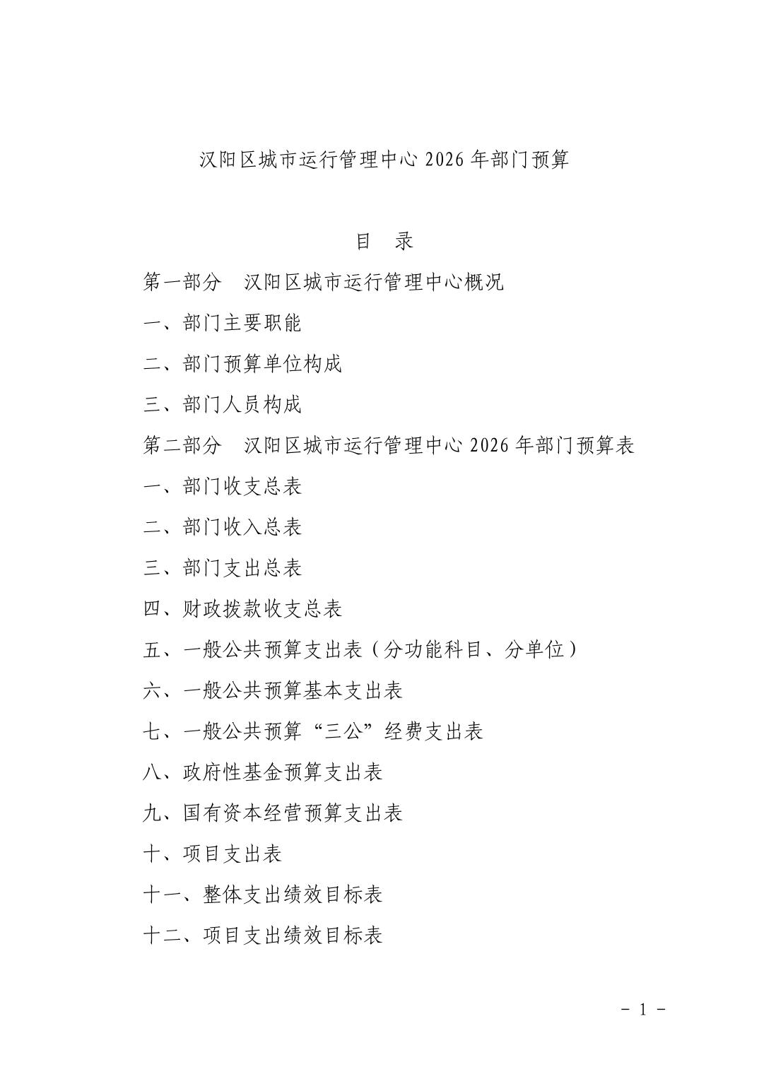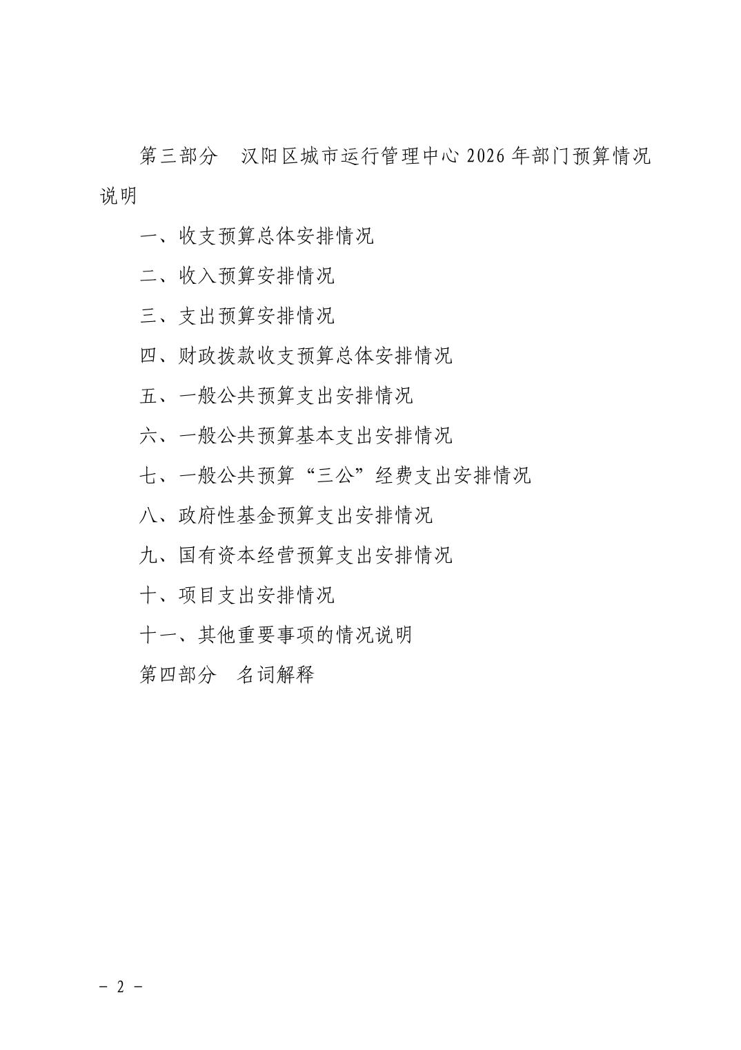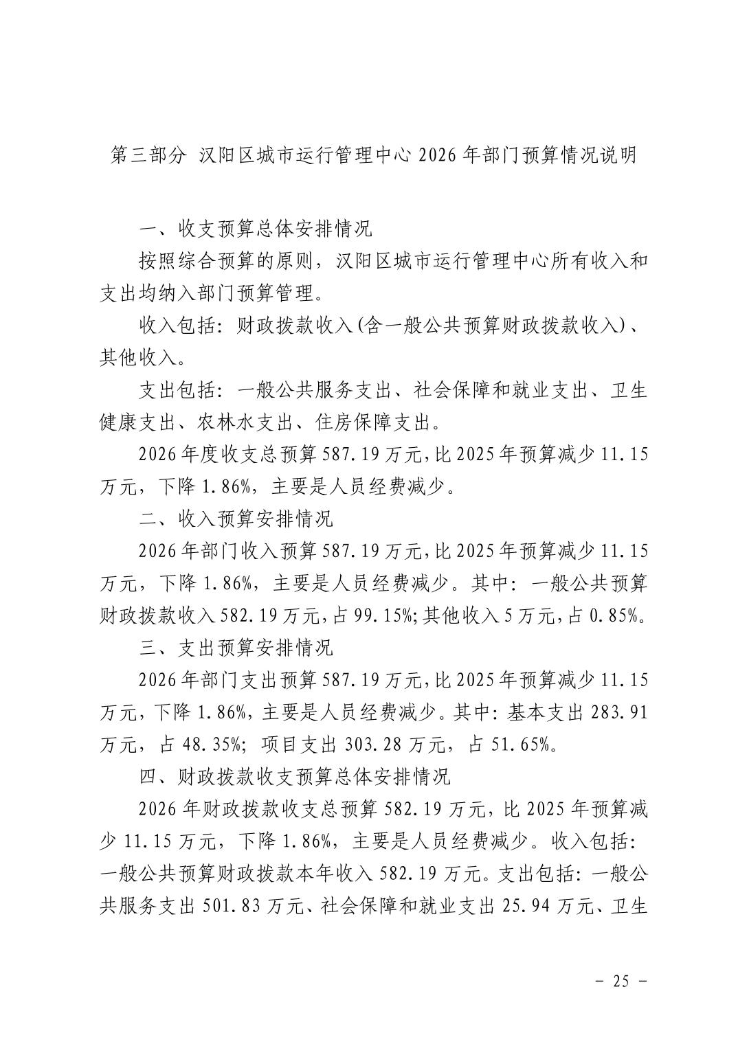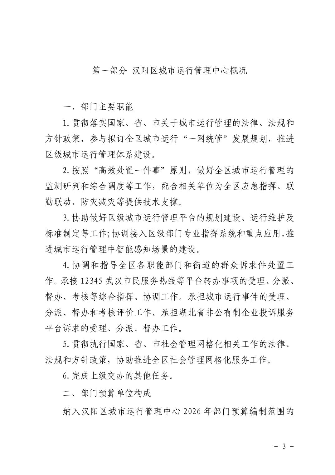 汉阳区城市运行管理中心2026年部门预算