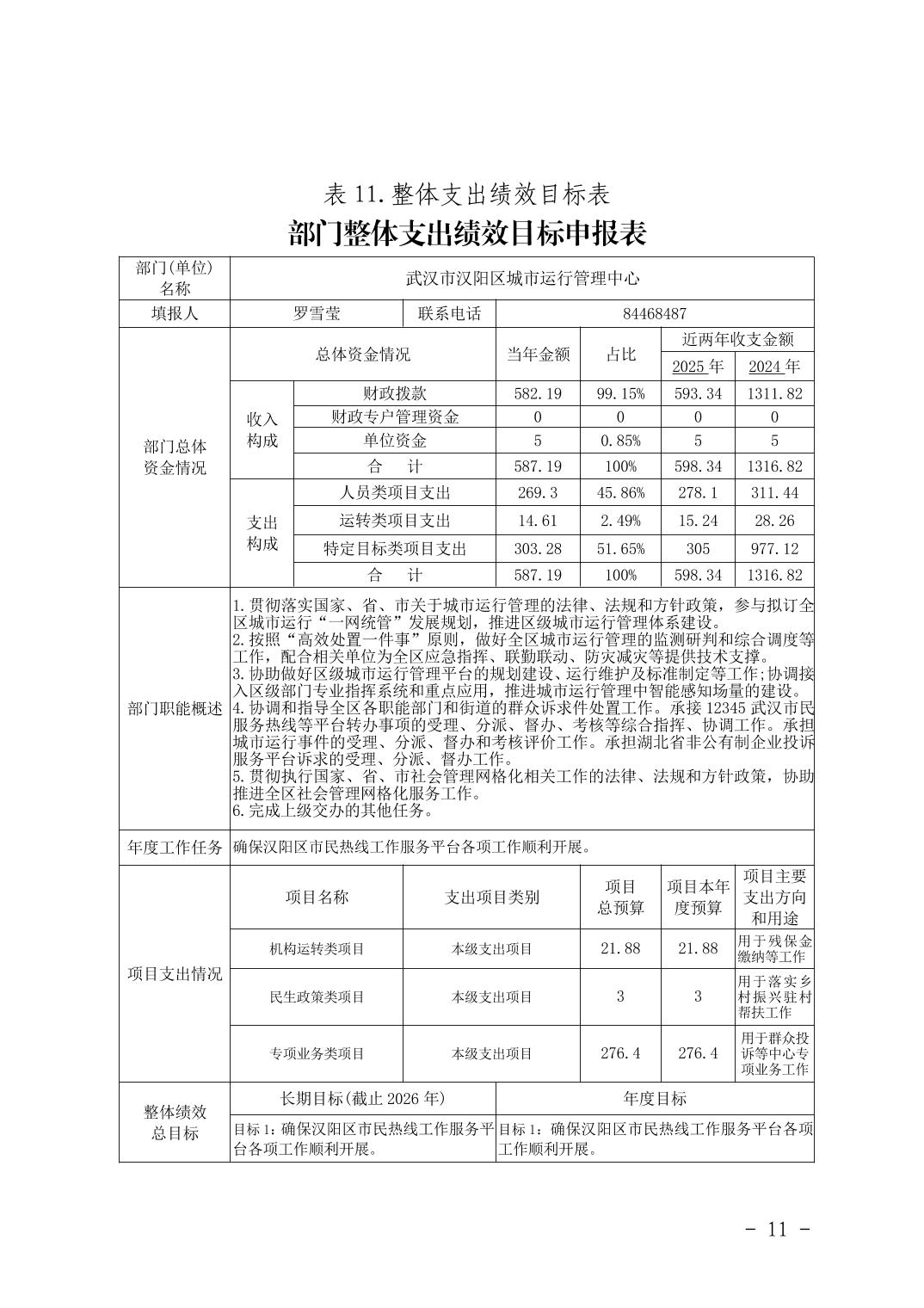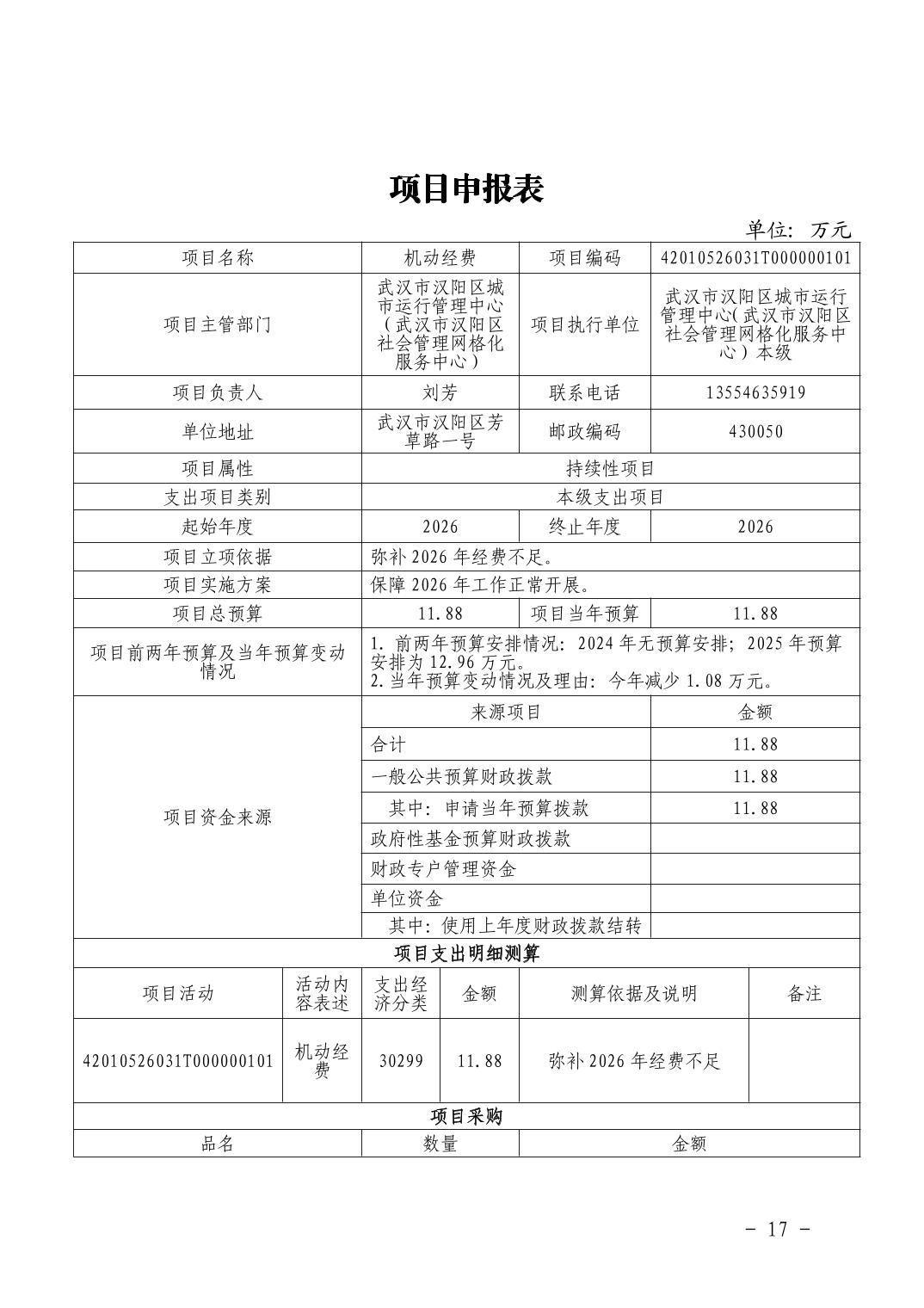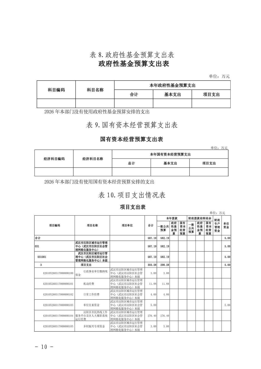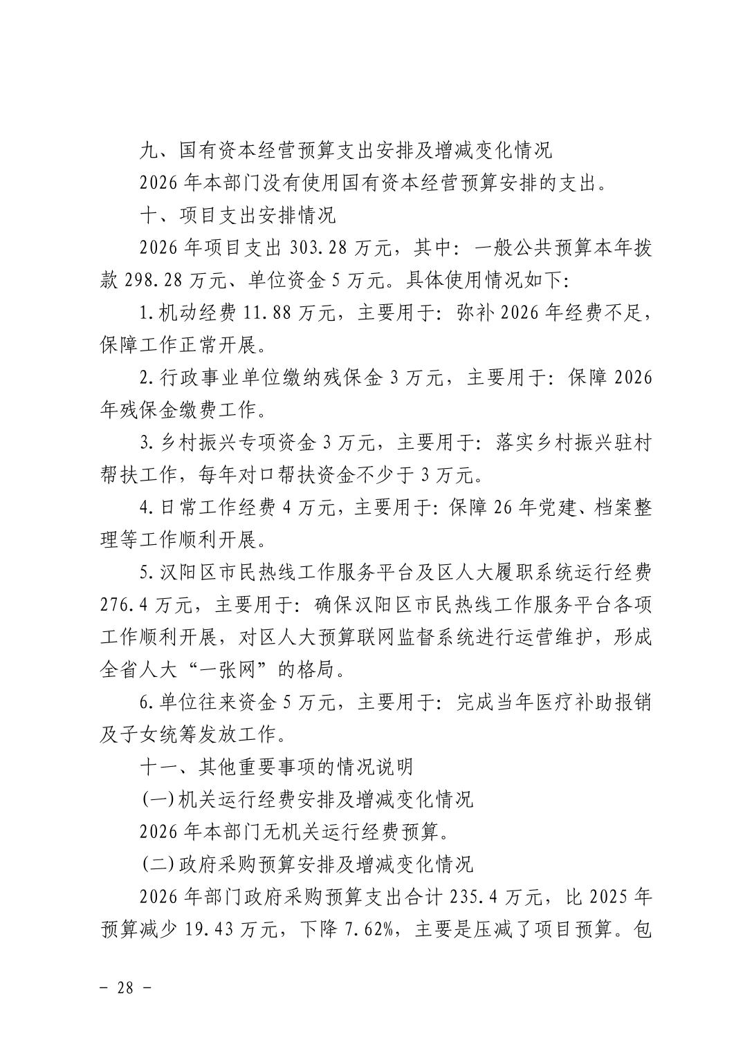 汉阳区城市运行管理中心2026年部门预算