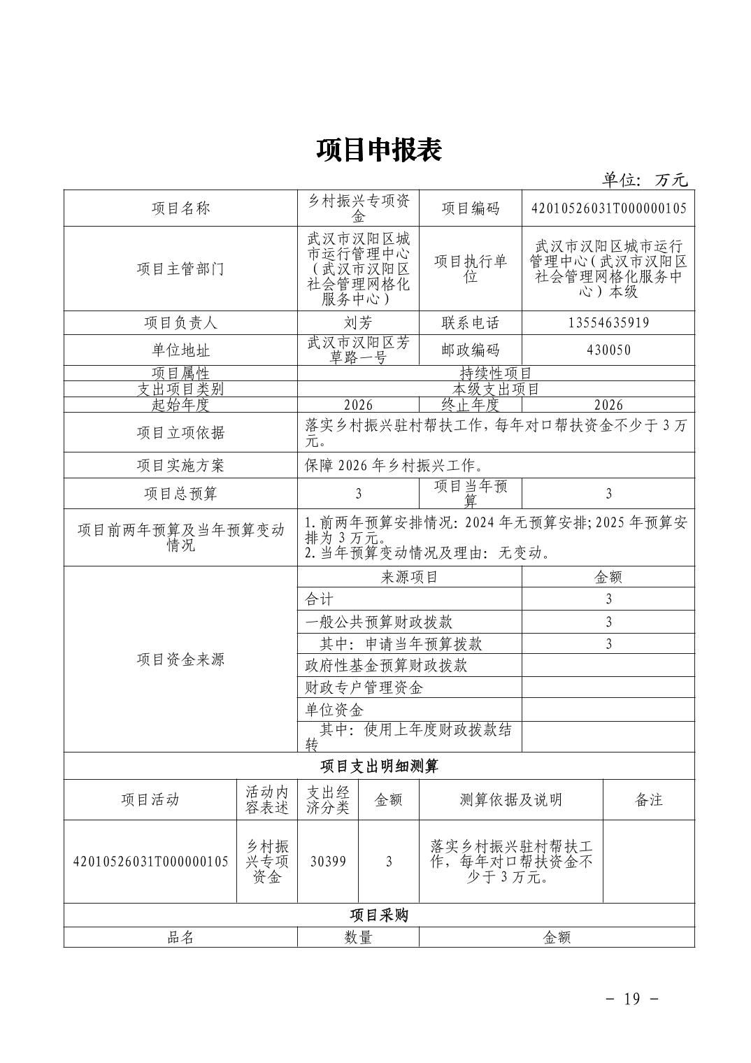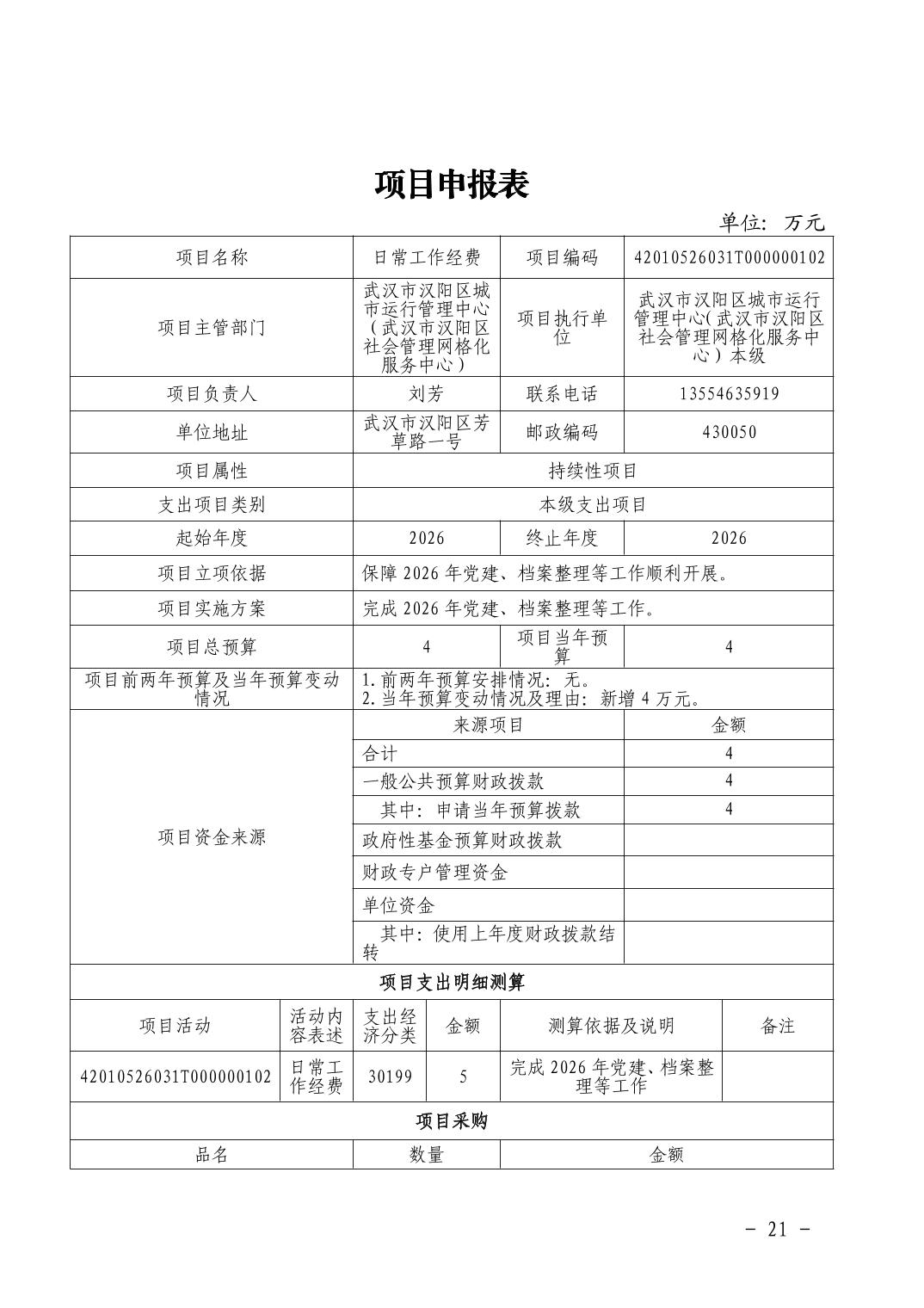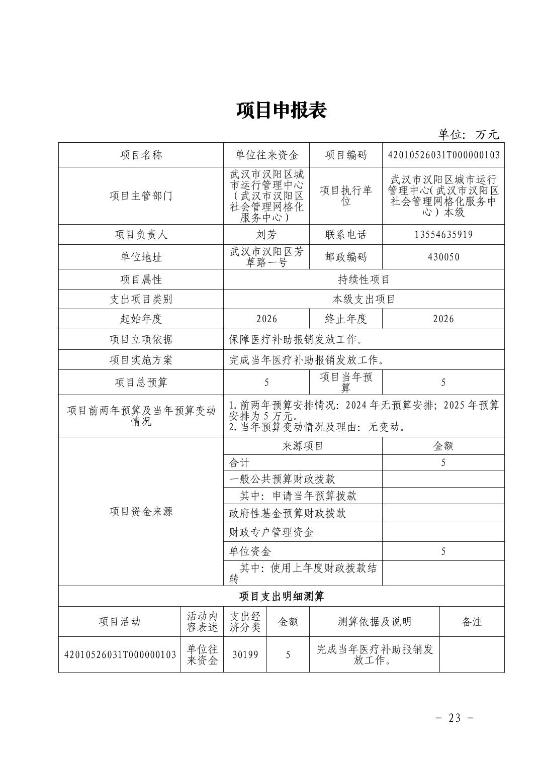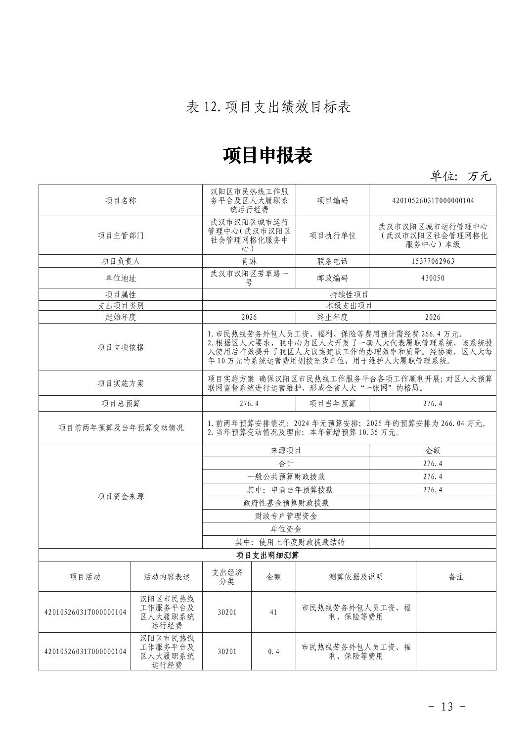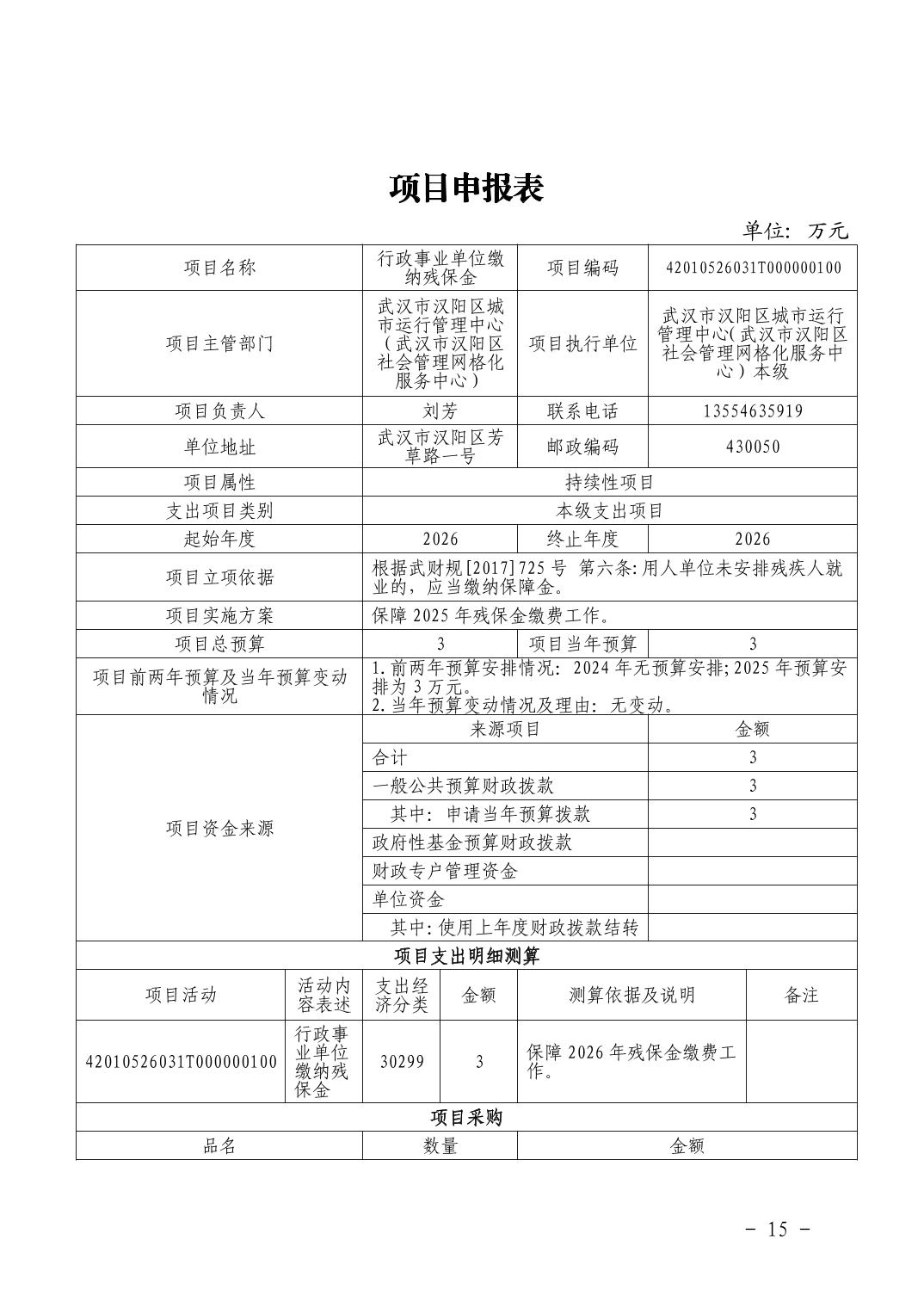 汉阳区城市运行管理中心2026年部门预算