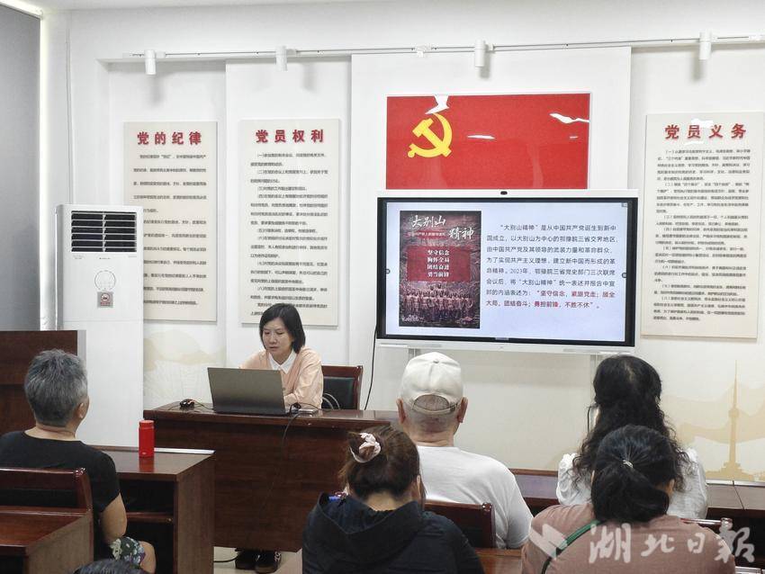 宣讲会上,江汉大学老师以“弘扬三大精神 凝聚奋进力量”为主题,从三个方面进行了深入浅出的讲解。通过生动的历史案例,详细解读了大别山精神、抗洪精神和抗疫精神的核心要义。她特别强调,这三大精神是中国共产党人精神谱系的重要组成部分,是湖北人民宝贵的精神财富,同时号召社区党员和居民要把三大精神转化为实际行动,积极参与社区建设,为湖北高质量发展贡献力量。