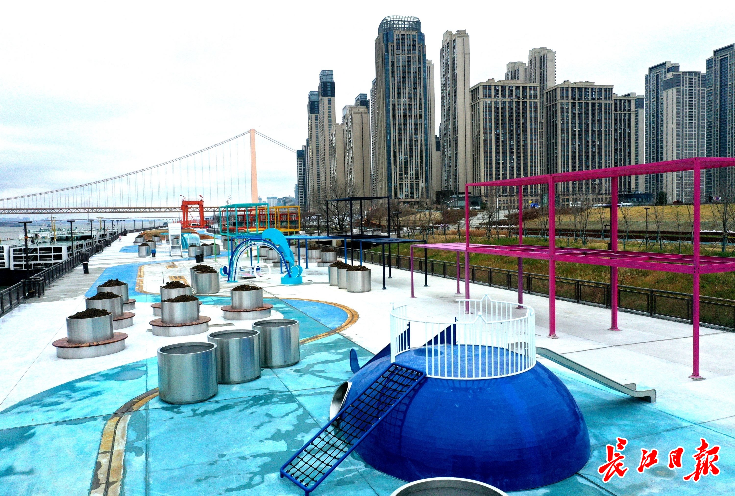 武汉城发集团所属碧水集团该项目负责人王强介绍,该项目建设是武汉落实中央生态环境保护督察有关要求,持续推进“长江大保护”的重要举措,也是打造世界级滨水空间、长江经济带生态示范区、国际文化旅游目的地的示范项目之一。“以往这里高桩平台面积大,没有绿化、道路,市民难以亲水,为了让工业文化与绿色生态相融合,项目以地方性乡土植物为主,构建了物种丰富、景观多样的江面‘绿色浮岛’,部分造型花坛还采用了做锈耐候钢板,经过特殊处理的表面就像码头的货船一样,工业感十足;在建筑方面,则新建了可移动拆卸的彩色集装箱等建筑物,不仅将新旧两者融合,也丰富了园区景观。”