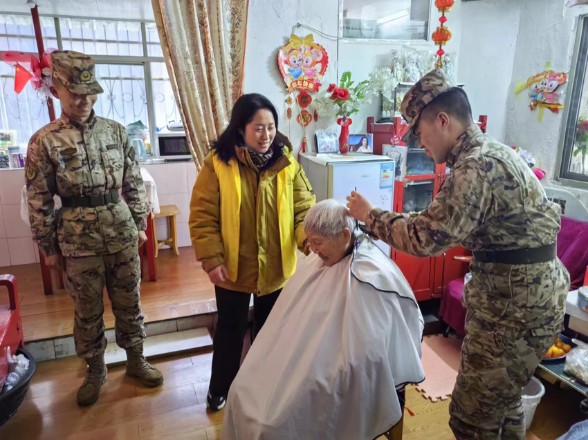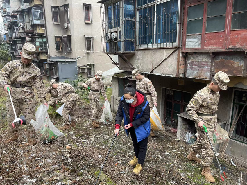 上午,鹦鹉街自力社区、武警武汉支队汉阳中队官兵志愿者们来到了社区3户空巢老人家中,为他们免费理发、清理杂物、打扫卫生,确保其居家安全。下午,建桥街道与大桥社区、武警武汉支队执勤四大队的官兵志愿者们,到居民宿舍后面的山上开展清洁家园活动,大家听令而动、步调一致,不一会便将垃圾、杂物清理一空,使环境得到了改善。