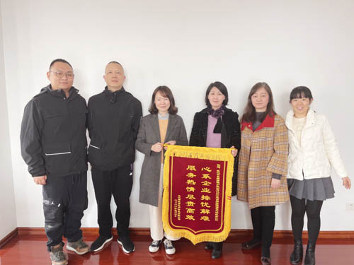 3月7日下午, 武汉祥悦房地产开发有限公司员工一行带着“心系企业排忧解难 服务热情尽责高效”的锦旗来到武汉市自然资源和规划局汉阳分局,对分局热情、高效的服务表示衷心的感谢。