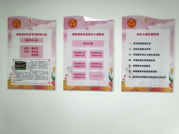 老关新城小区妇女小组在楼栋入户大厅张贴门栋妇女小组成员信息,方便居民能够就近找到妇联组织;展示楼栋家风故事,向居民宣传楼栋优秀妇女典型;展示特色队伍活动剪影及活动安排计划,方便妇女群众了解妇女小组并积极参与到活动中来;设置微心愿树,方便收集妇女群众的意见、建议和需求。妇女小组们充分发挥“熟人效应”,积极调动小区居民共同参与到小区治理中,传达辖区居民反映的诉求,架起社区与居民之间沟通互助的桥梁。