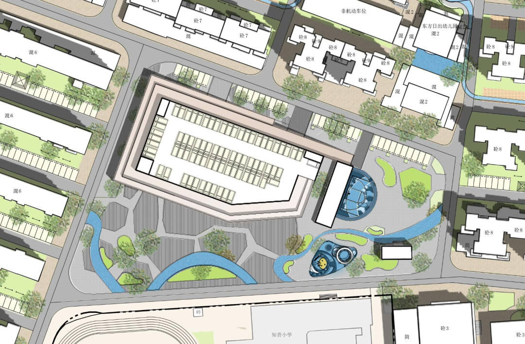 △知音东苑小区文体站公园将改造为荟邻中心(东苑广场),并且还将在这里新建停车综合服务楼(效果图)