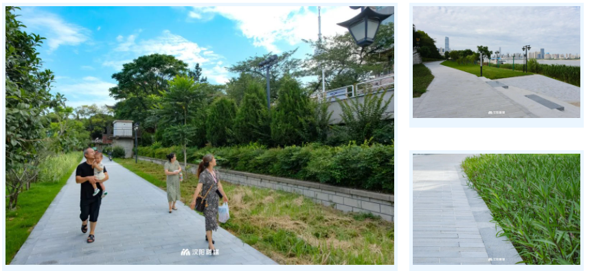 “园路将原来2米宽的人行道,改造扩宽至3.5米,采用生态滤水板铺装,突出南岸嘴沿岸的景观特征,展现天然、古朴、灵动之美。”汉阳市政施工负责人告诉我们,工程完工后,从晴川阁到南岸嘴步行距离只需600米。