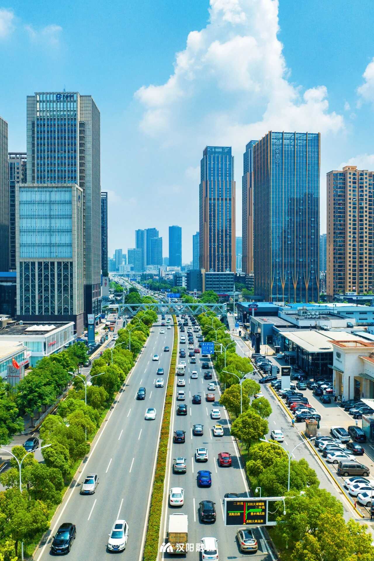 “两轴引领”指龙阳大道和四新大道发展轴,两条轴线如同汉阳的发展动脉,汇聚产业与人才,构建起汉阳产业升级和城区功能提升的“黄金十字轴”。龙阳大道聚焦新能源汽车“研产展销”一体化与大健康产业,集聚58个主流汽车品牌与九州通等龙头企业,形成千亿级产业集群;四新大道强化要素集聚与功能联动,持续提升区域经济密度、创新动能和公共服务能力,成为城区功能提升的核心载体。两条轴线的引领作用,推动各类资源高效配置,促进产业、人口与城市功能深度融合。