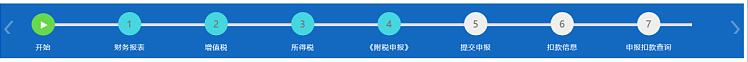 2、在页面的正上方可以显示本期需要申报的税种,包括财务报表、增值税、所得税、附税申报等。