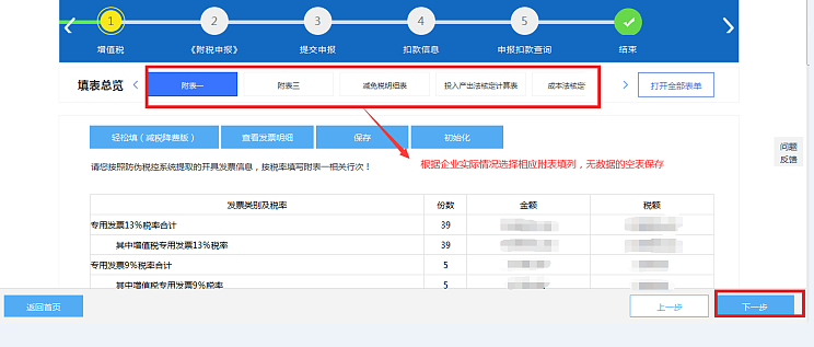 3、点击“下一步”,进入申报操作向导,按照下图步骤依次点击“下一步”进行申报表单填写。