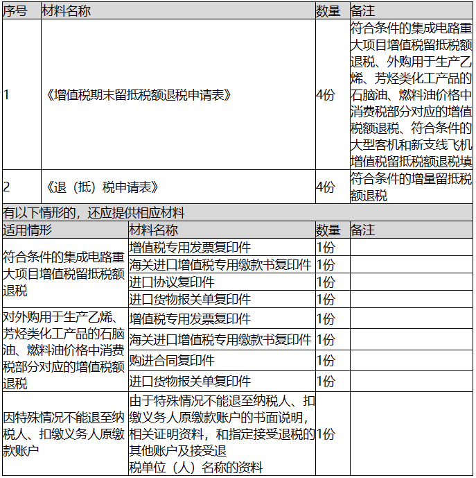 符合条件的集成电路重大项目增值税留抵税额退税和对外购用于生产乙烯、芳烃类化工产品的石脑油、燃料油价格中消费税部分对应的增值税额退税事项,15个工作日内办结;