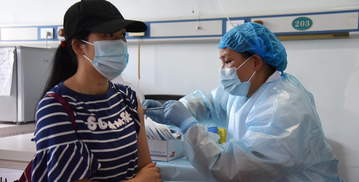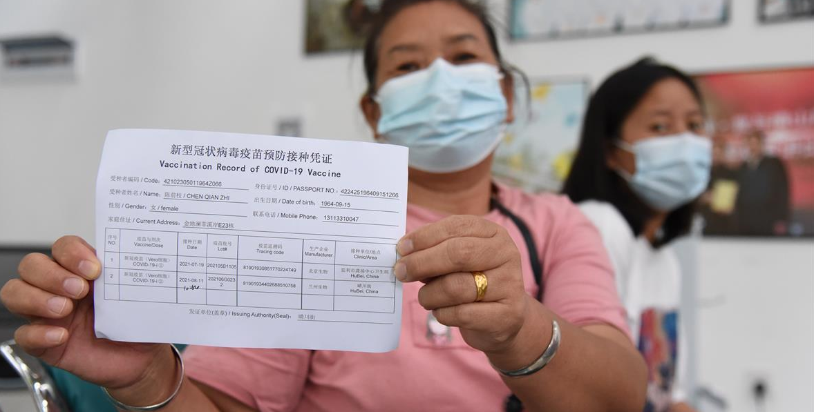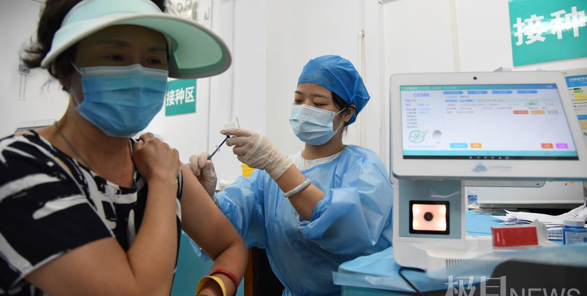 8月11日,湖北监利的陈女士在汉阳区晴川街社区卫生服务中心接种第二剂疫苗