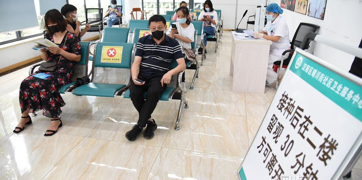 8月11日,在汉阳区晴川街社区卫生服务中心,市民接种新冠疫苗后等待观察