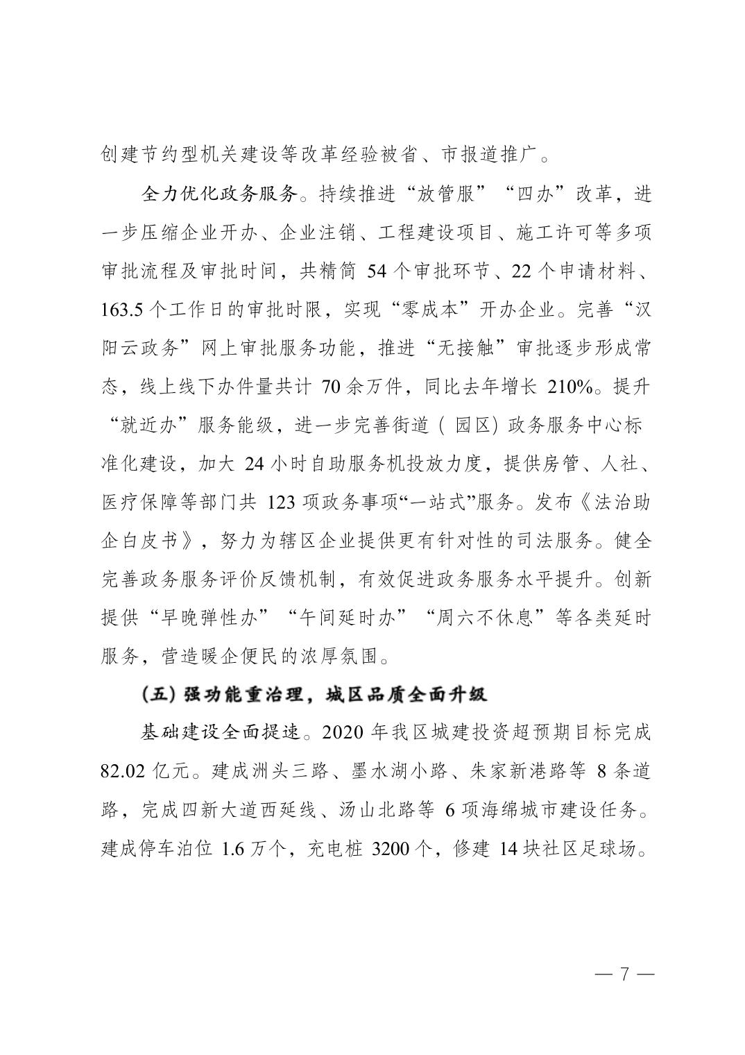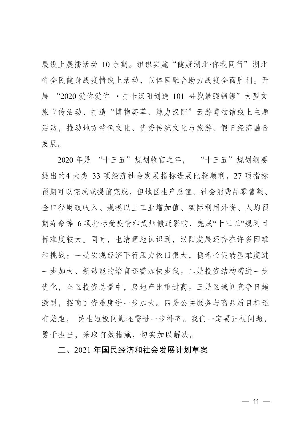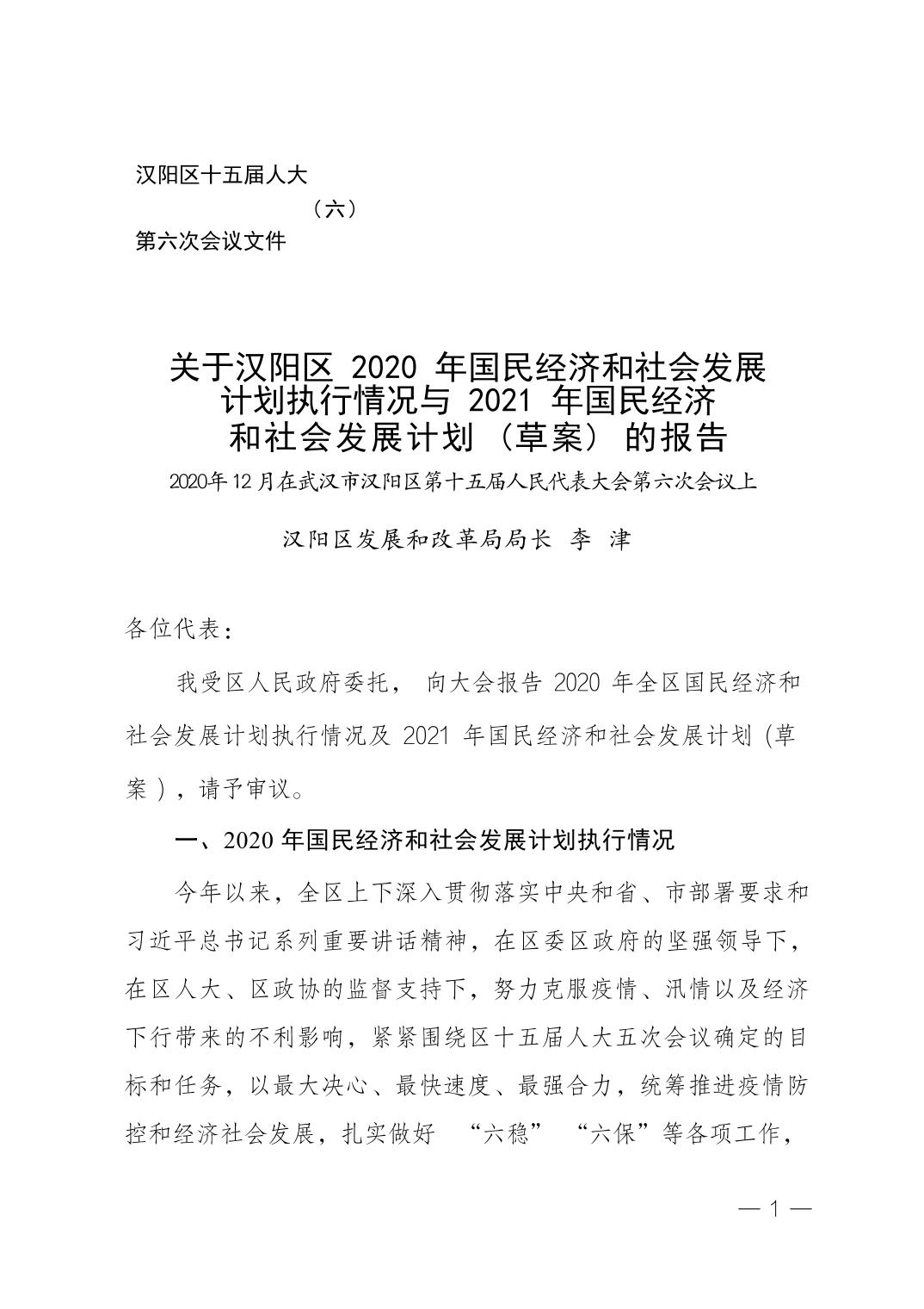 关于汉阳区2020年国民经济和社会发展计划执行情况与2021年国民经济和社会发展计划(草案)的报告