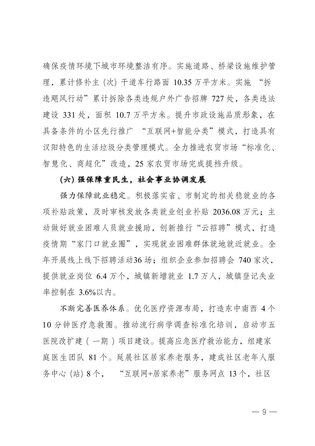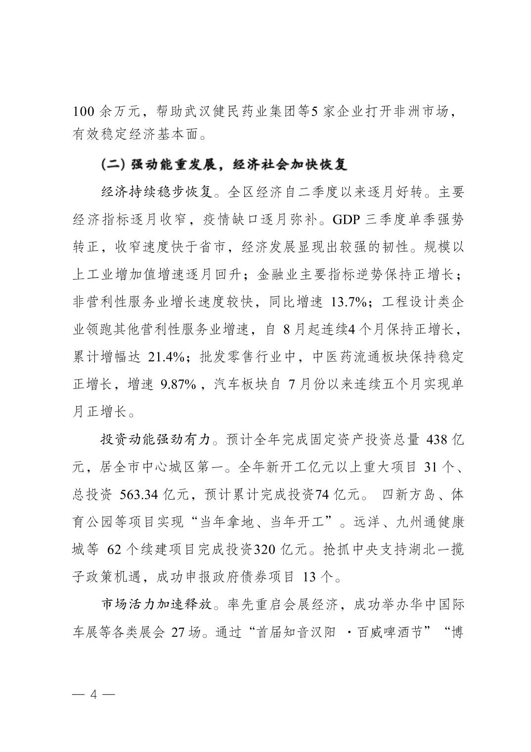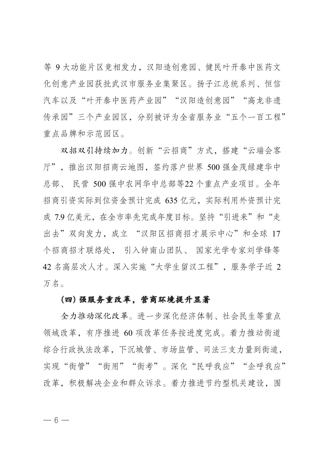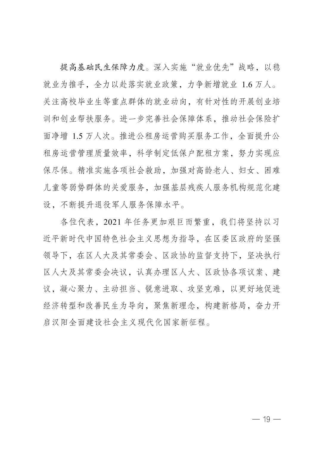 关于汉阳区2020年国民经济和社会发展计划执行情况与2021年国民经济和社会发展计划(草案)的报告