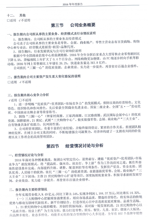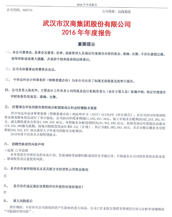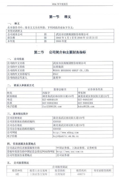 武汉市汉商集团股份有限公司 2016年年度报告(1)