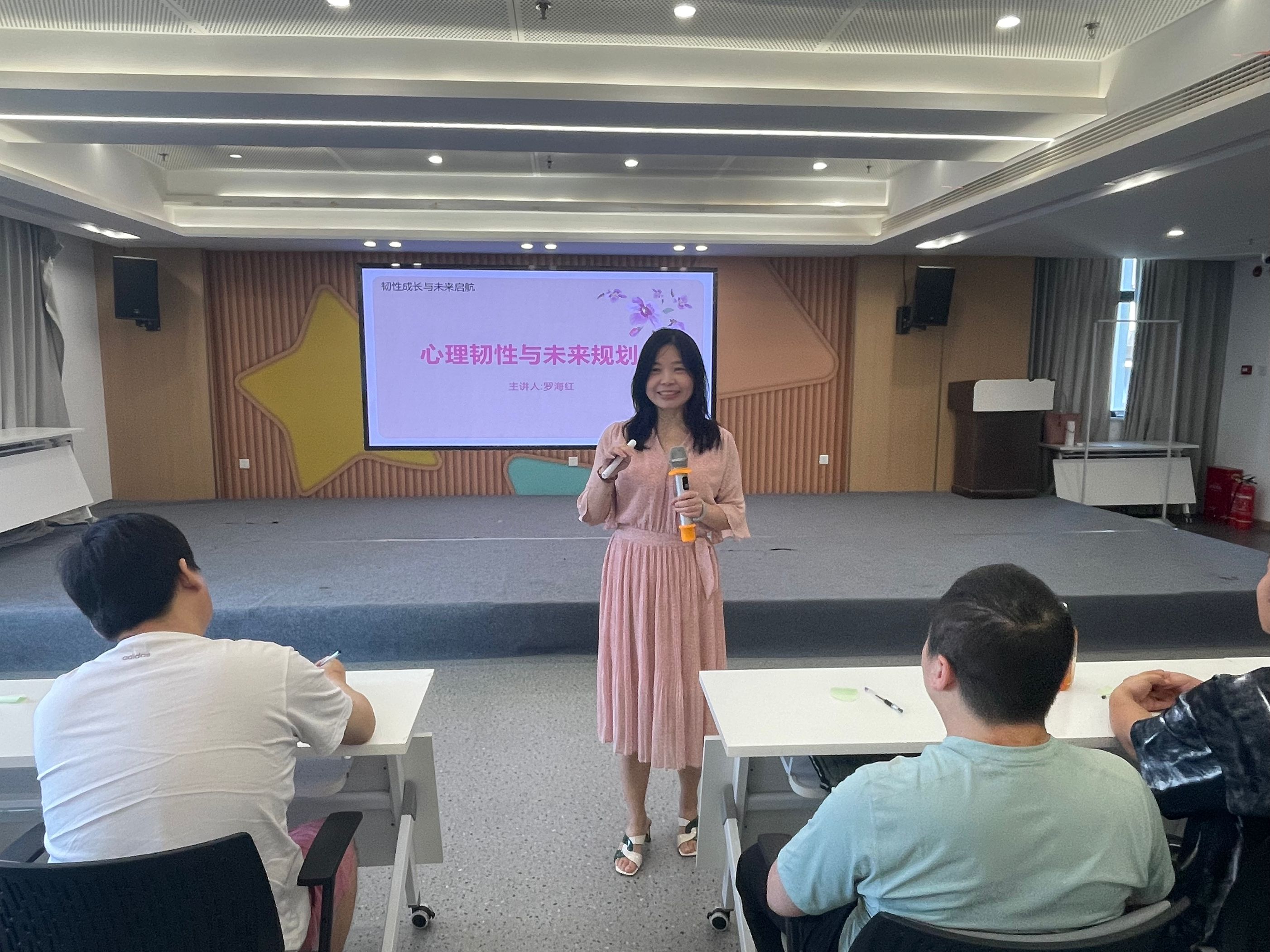 活动开始,罗海红老师首先深入浅出地为大家讲解了心理韧性的构建方法,包括通过认知重构帮助转变消极思维、学习情绪调节技巧以应对压力,以及借助正念练习增强当下觉察与自我接纳。她引导大家正确看待自己的过往经历,学会从挫折中提取资源与力量,从而在心理层面逐步实现自我接纳与内在重塑,增强“我能行”的效能感、“会变好”的乐观感、“不孤单”的归属感。