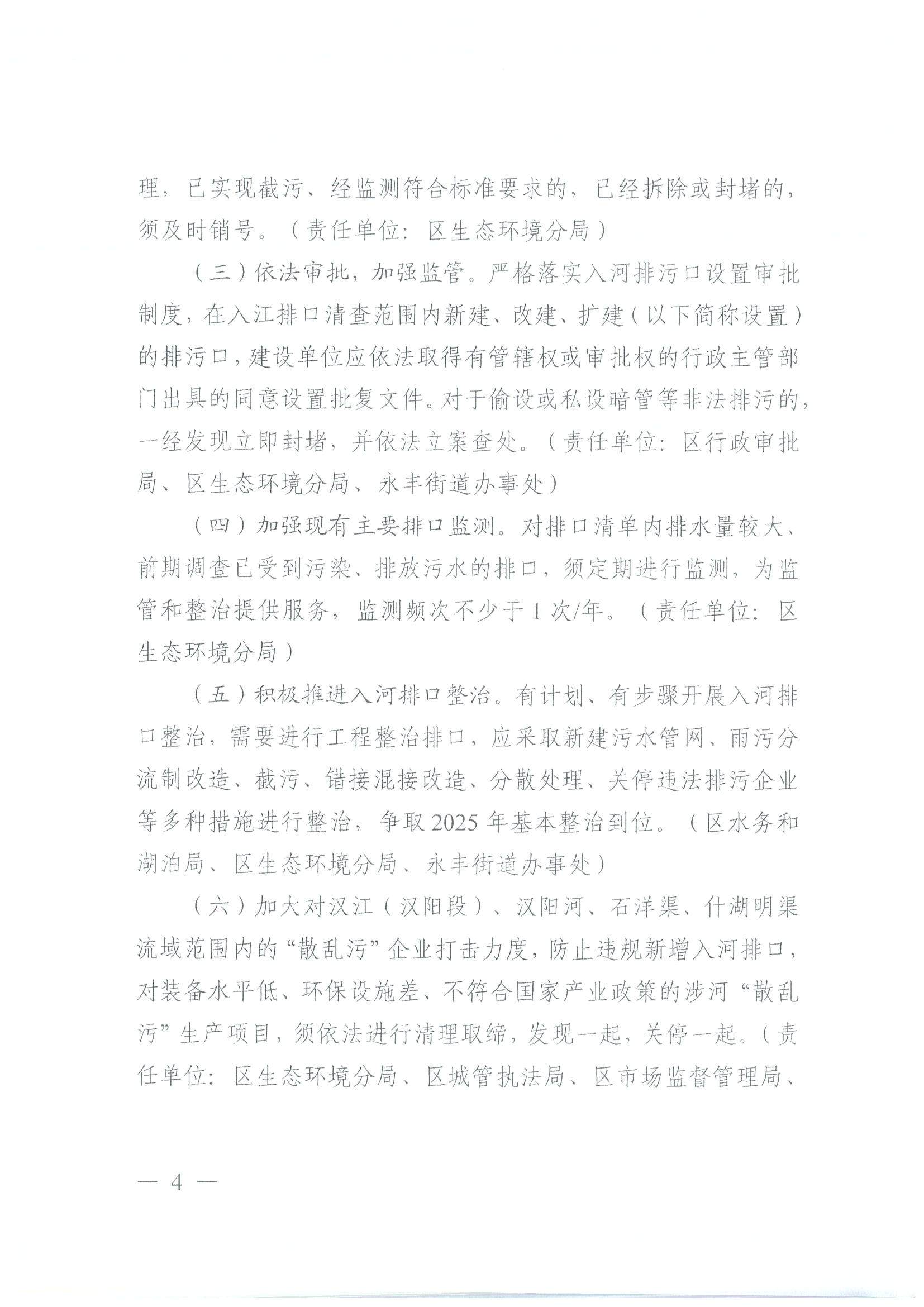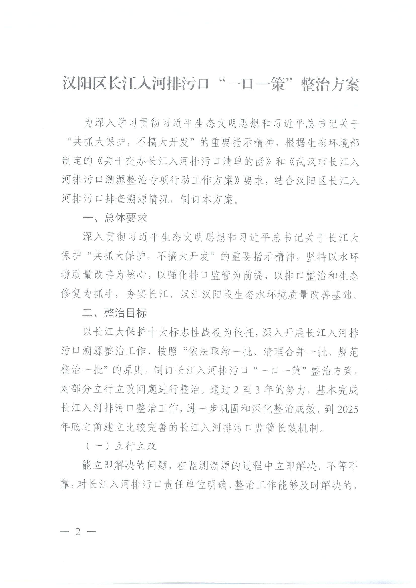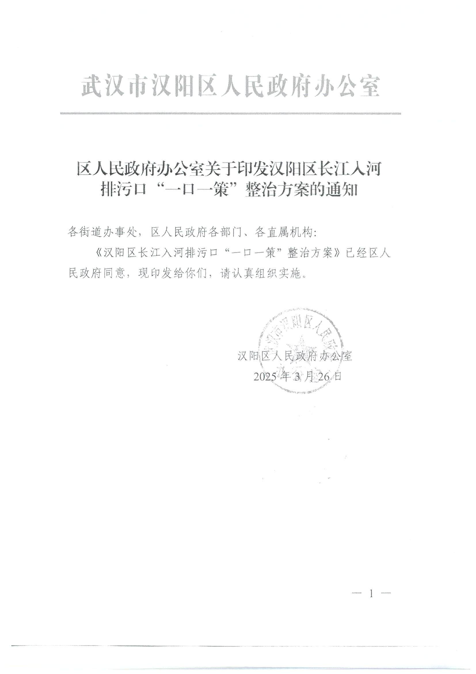 区人民政府办公室关于印发汉阳区长江入河排污口“一口一策”整治方案的通知