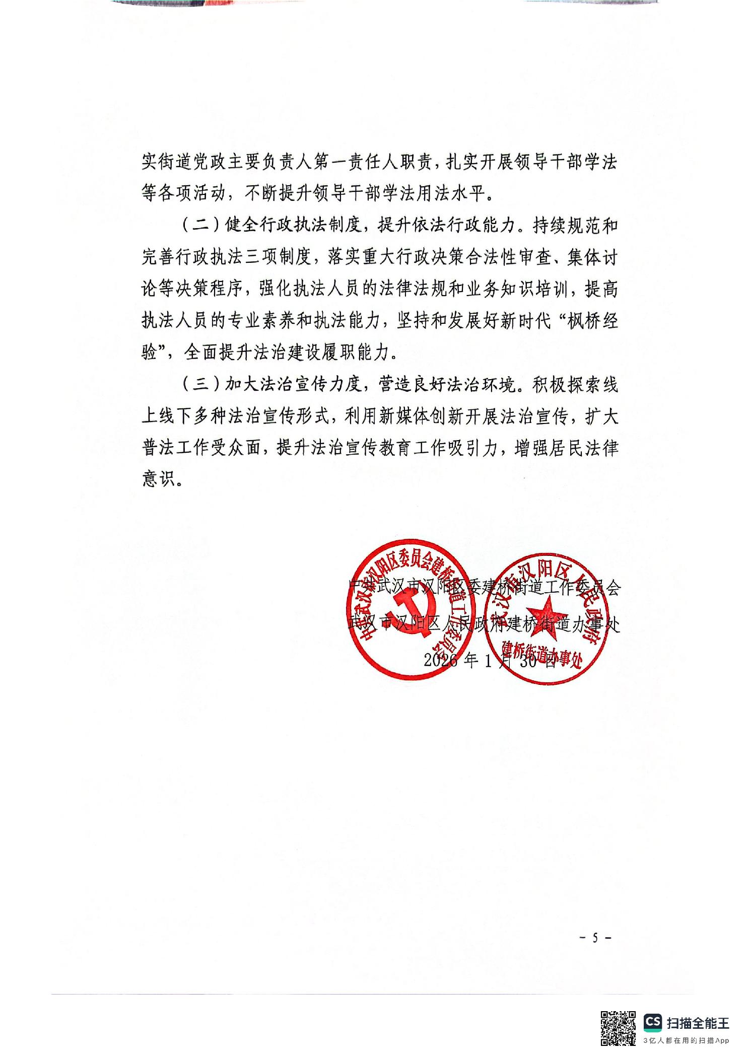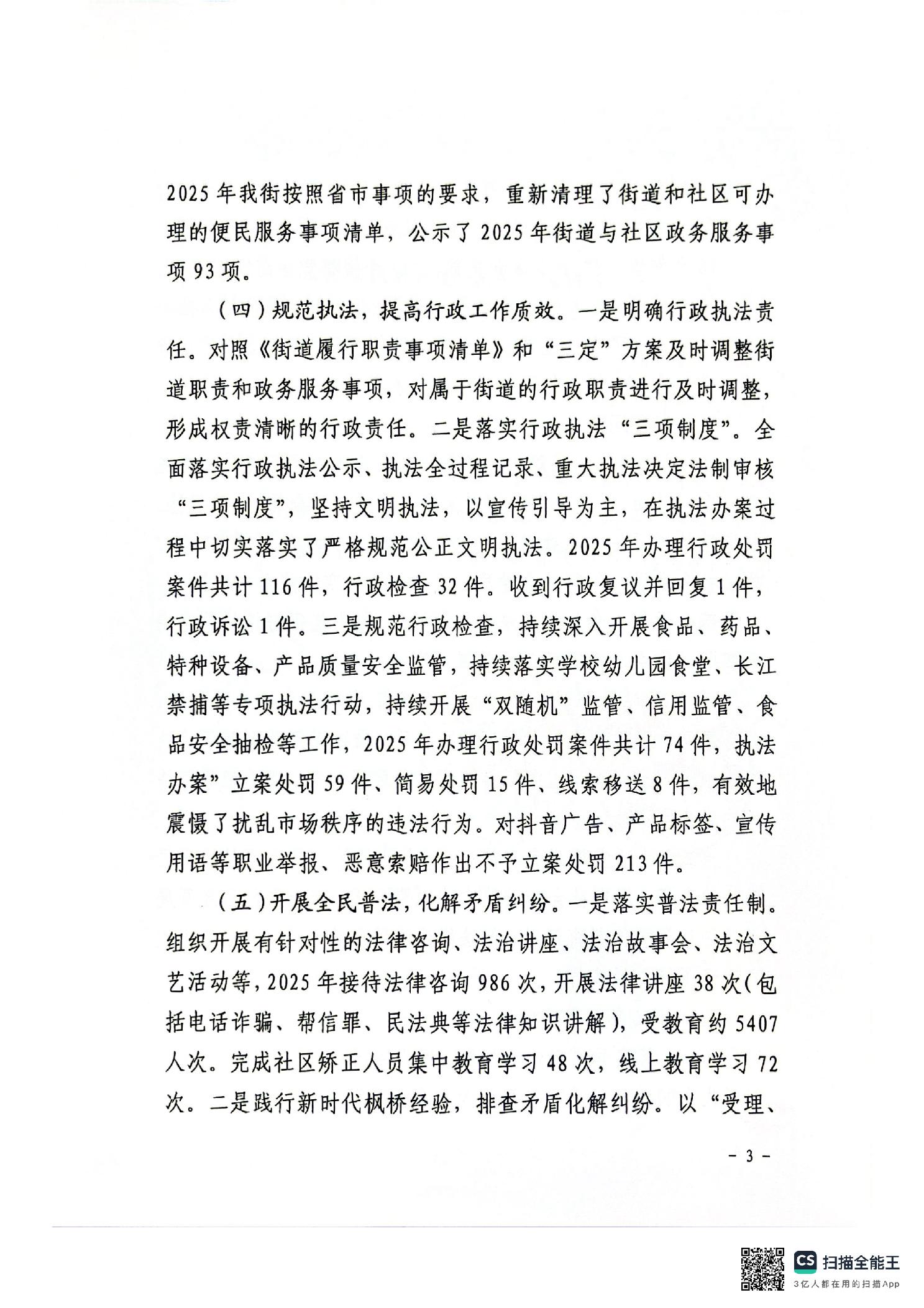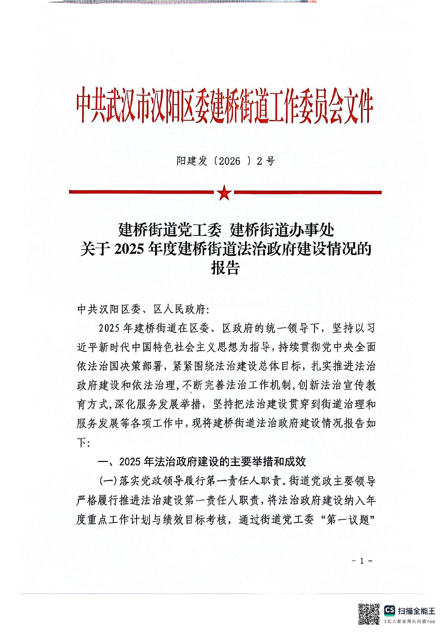 建桥街道党工委建桥街办事处关于2025年度建桥街道法治政府建设情况的报告