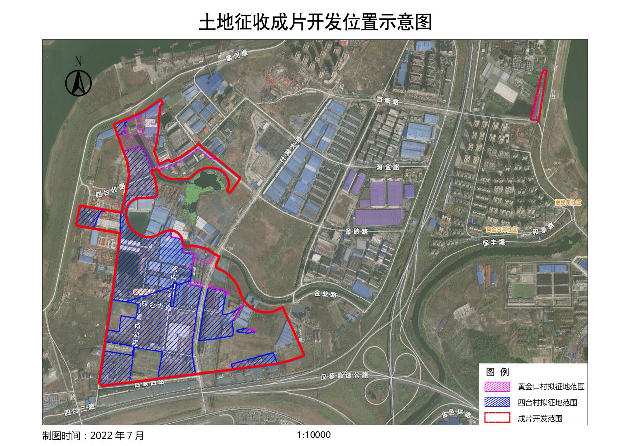 为促进汉阳区经济社会发展和公共利益需要,根据《中华人民共和国土地管理法》、《自然资源部关于印发〈土地征收成片开发标准(试行)〉的通知》(自然资规〔2020〕5号)和《省自然资源厅关于印发湖北省土地征收成片开发实施细则(试行)的通知》(鄂自然资规〔2021〕3号)有关规定,汉阳区人民政府组织编制了《汉阳区四台、黄金口片区土地征收成片开发方案》(以下简称“方案”)。方案内容如下: