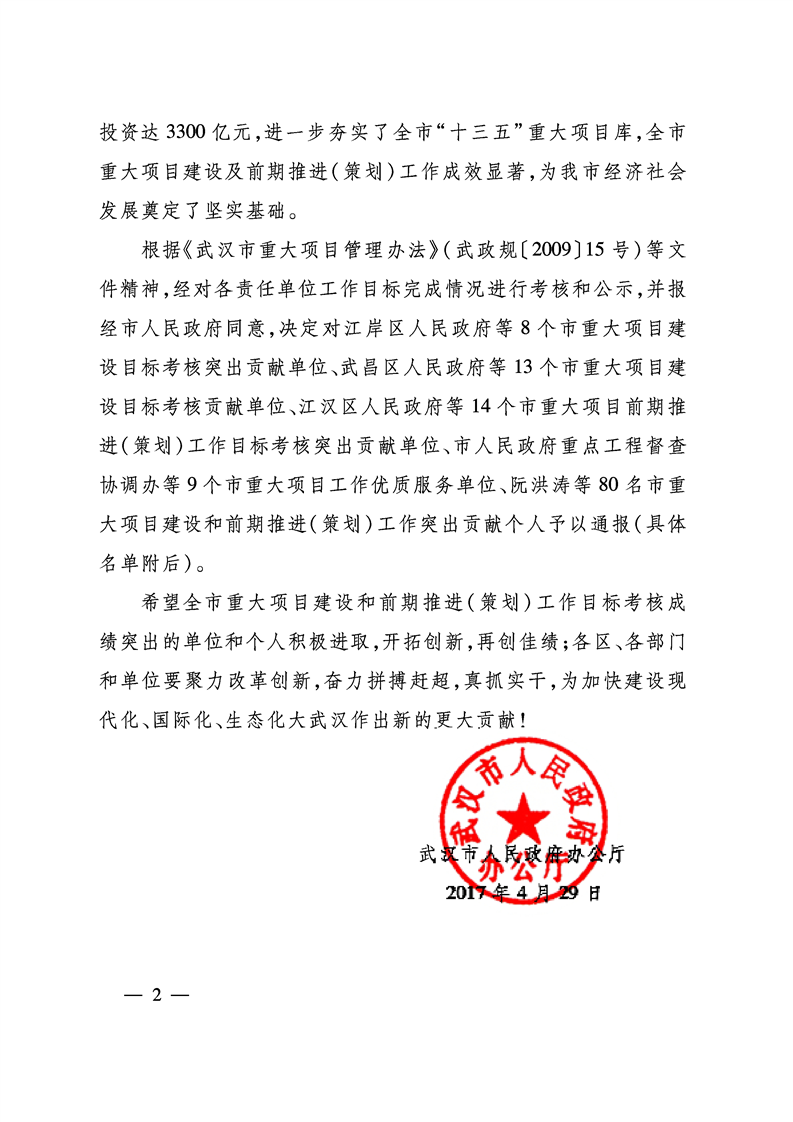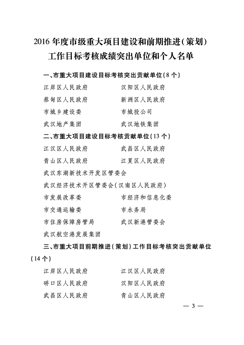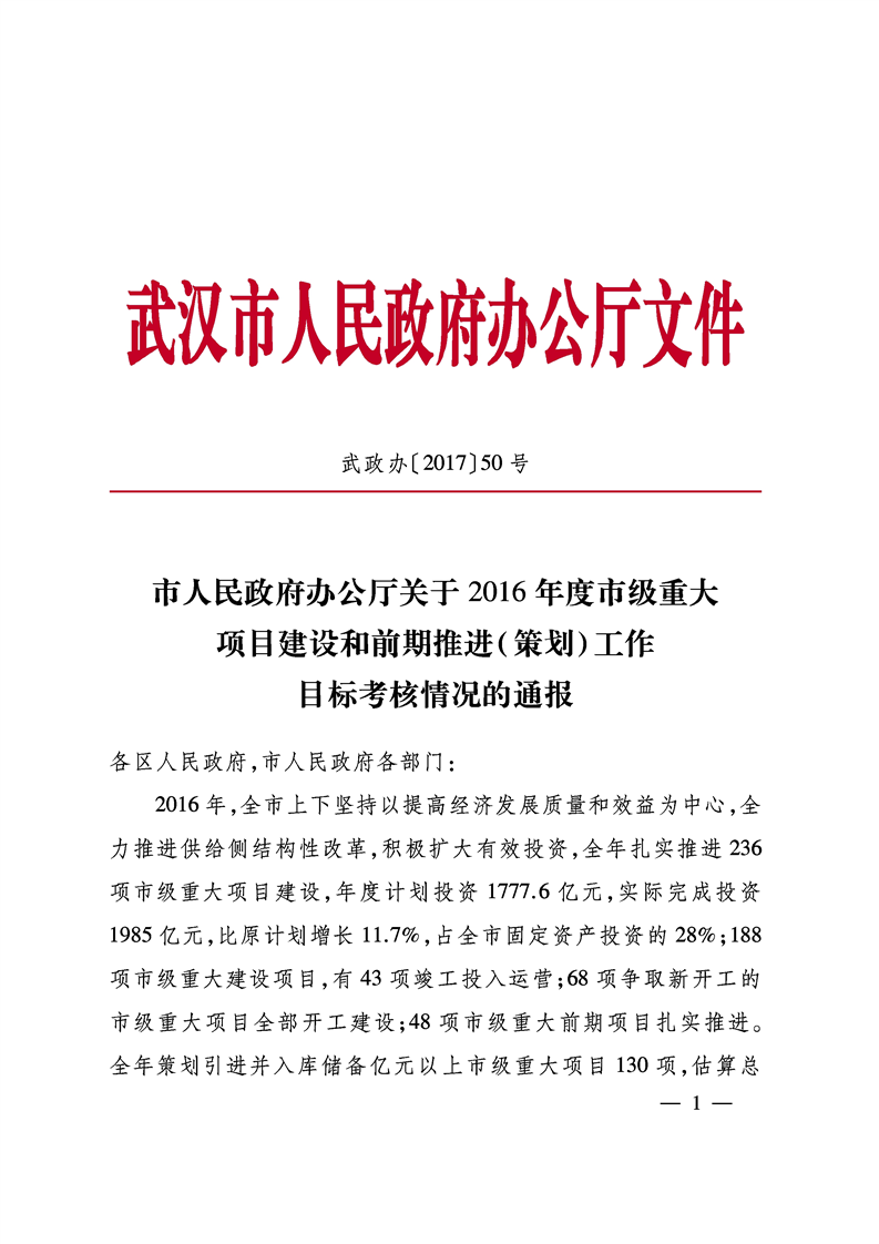 市人民政府办公厅关于2016年度市级重大项目建设和前期推进(策划)工作目标考核的通报
