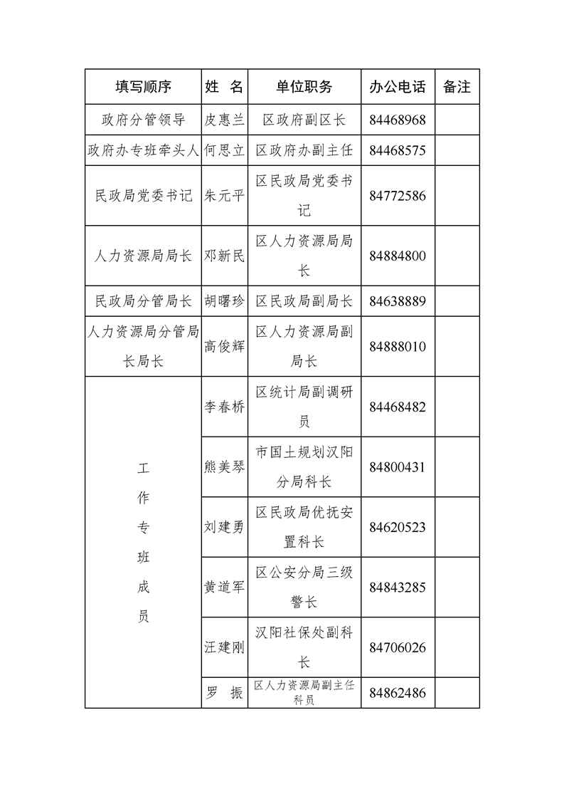 2.汉阳区退役军人和其他优抚对象信息采集工作专班人员分工及职责