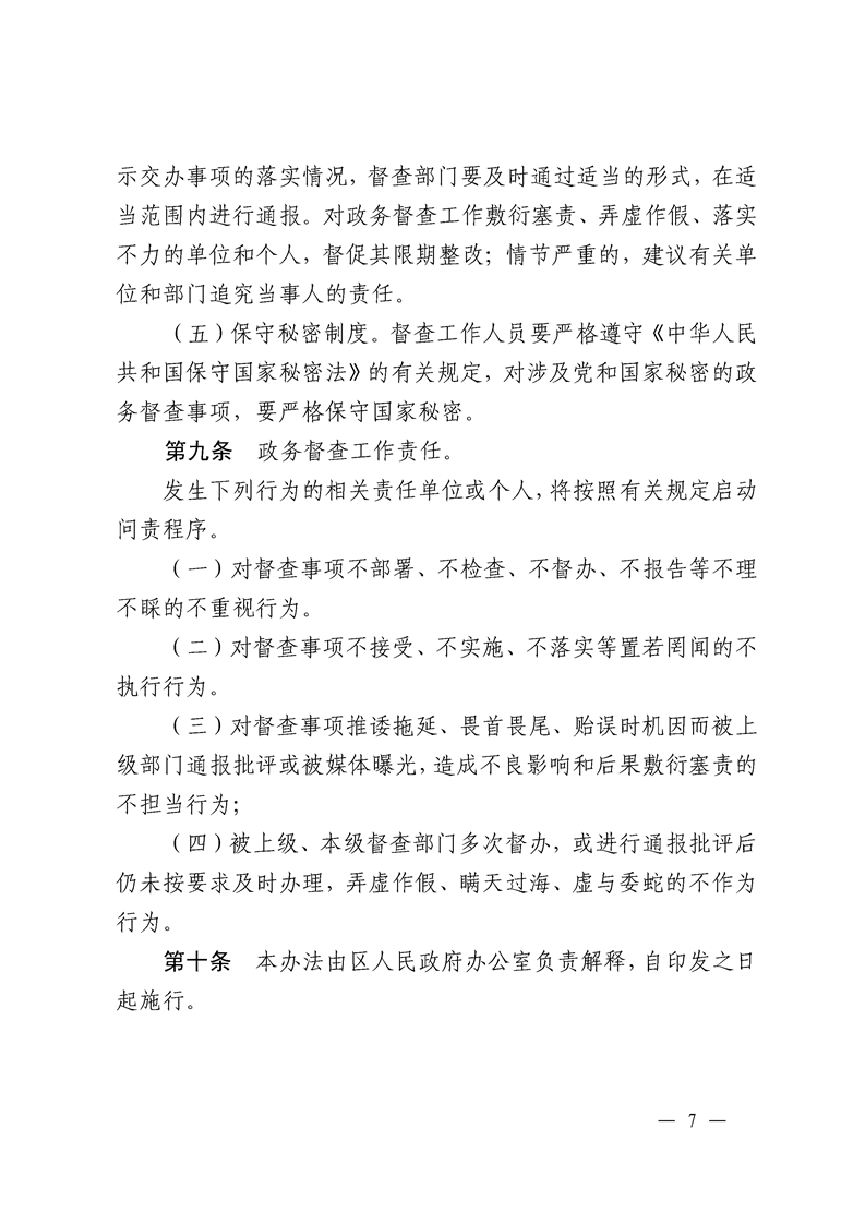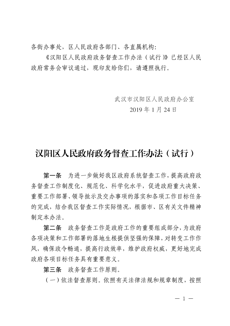 阳政办〔2019〕2号— 区人民政府办公室关于印发《汉阳区人民政府政务督查工作办法(试行)》的通知